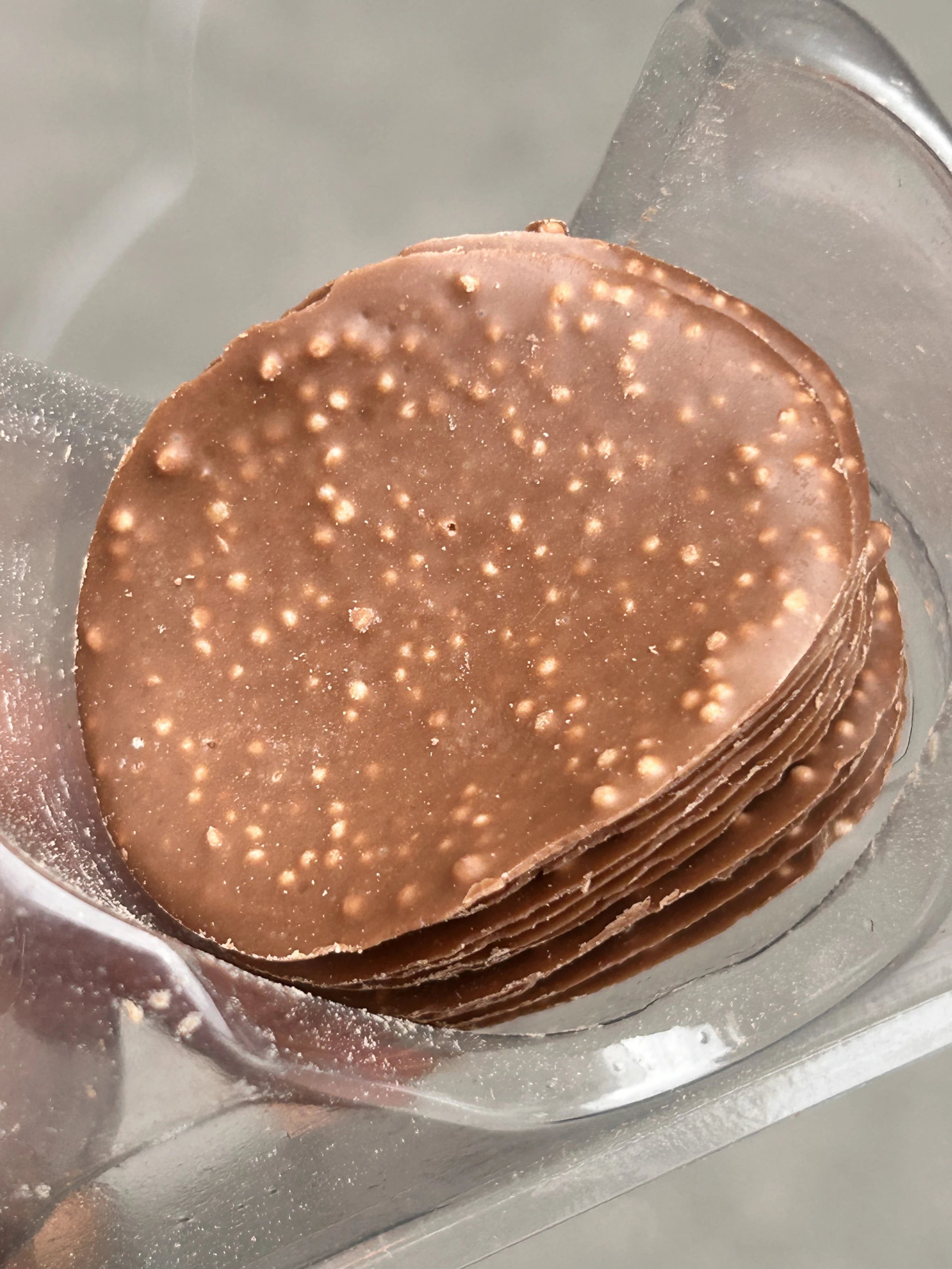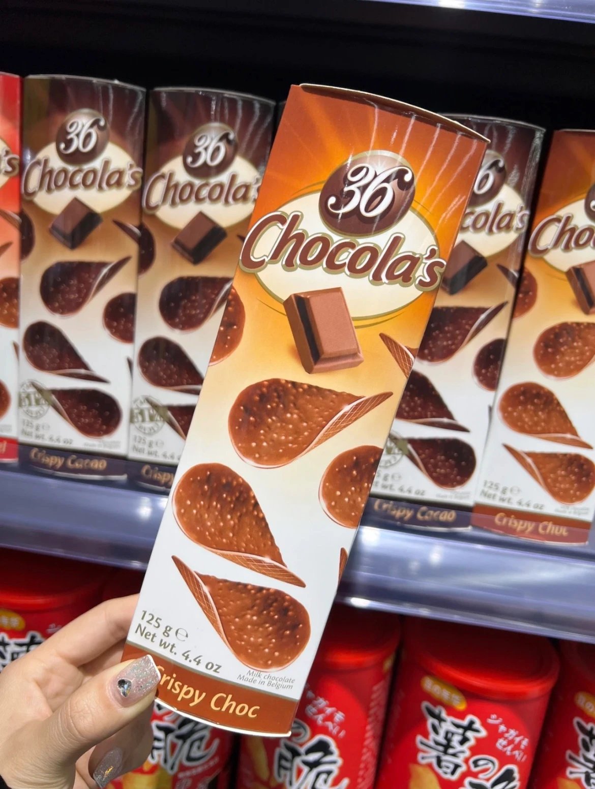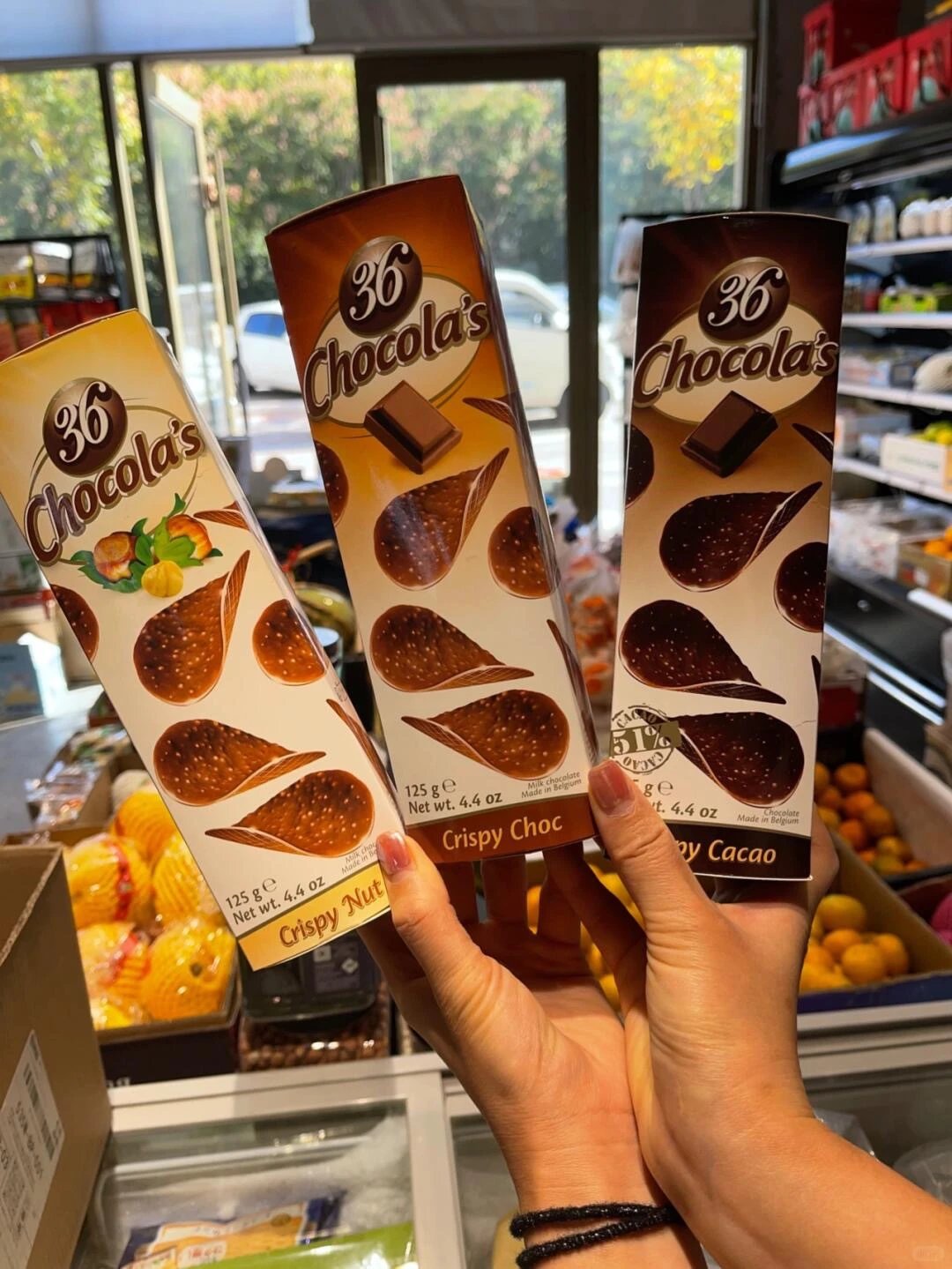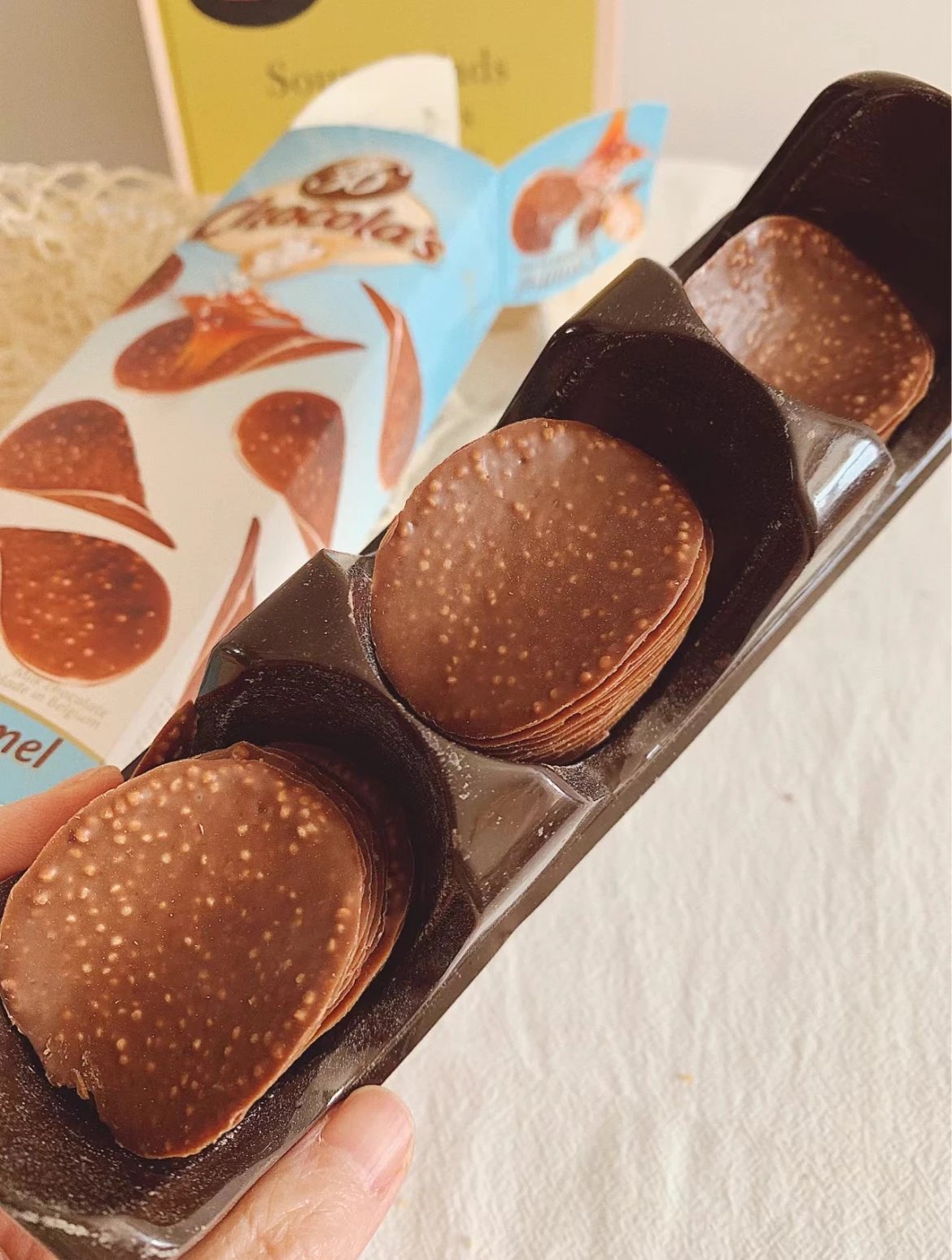 比利时超市的当家花旦 巧克力 榛子粒 脆香米 薯片形状的巧克力,用薯片的创新薄片造型轻薄,入口即化。加上香酥的爆米脆粒,融合丝滑巧克力,臻薄美味,咔滋香脆 一片一片根本停不下来