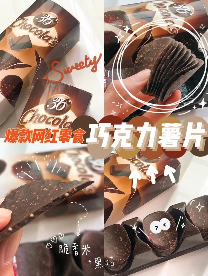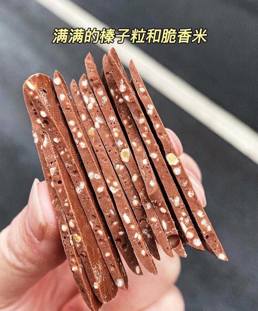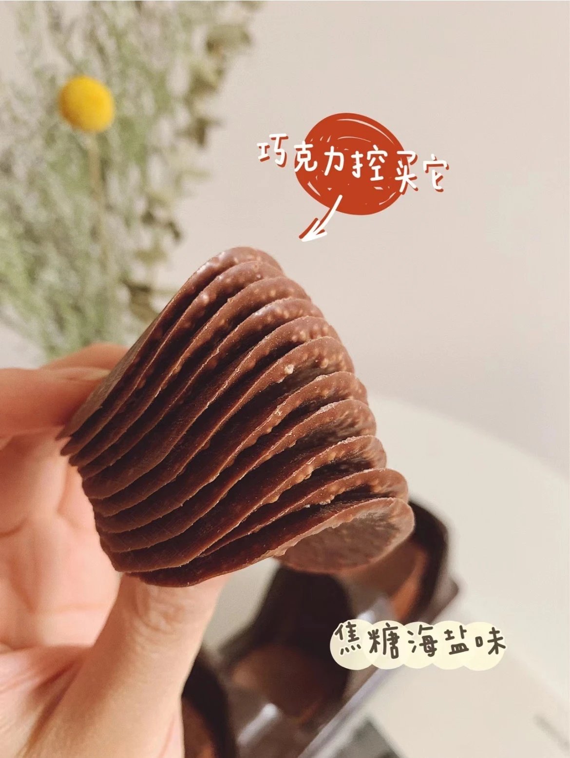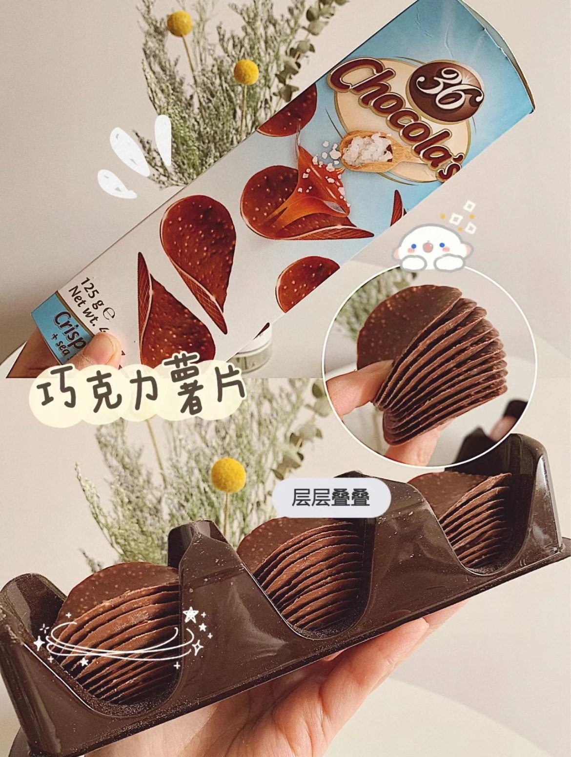 你可能以为这种“薯片”一样的巧克力,里面会是薯片,然而并不是! 每一片都是巧克力 脆香米做的!就像薯片一样嘎嘣嘎嘣脆的! 1mm脆薄片巧克力 甜蜜在舌尖跳舞 ,加上脆香米的碰撞 尽享甜蜜脆香,乐趣加倍