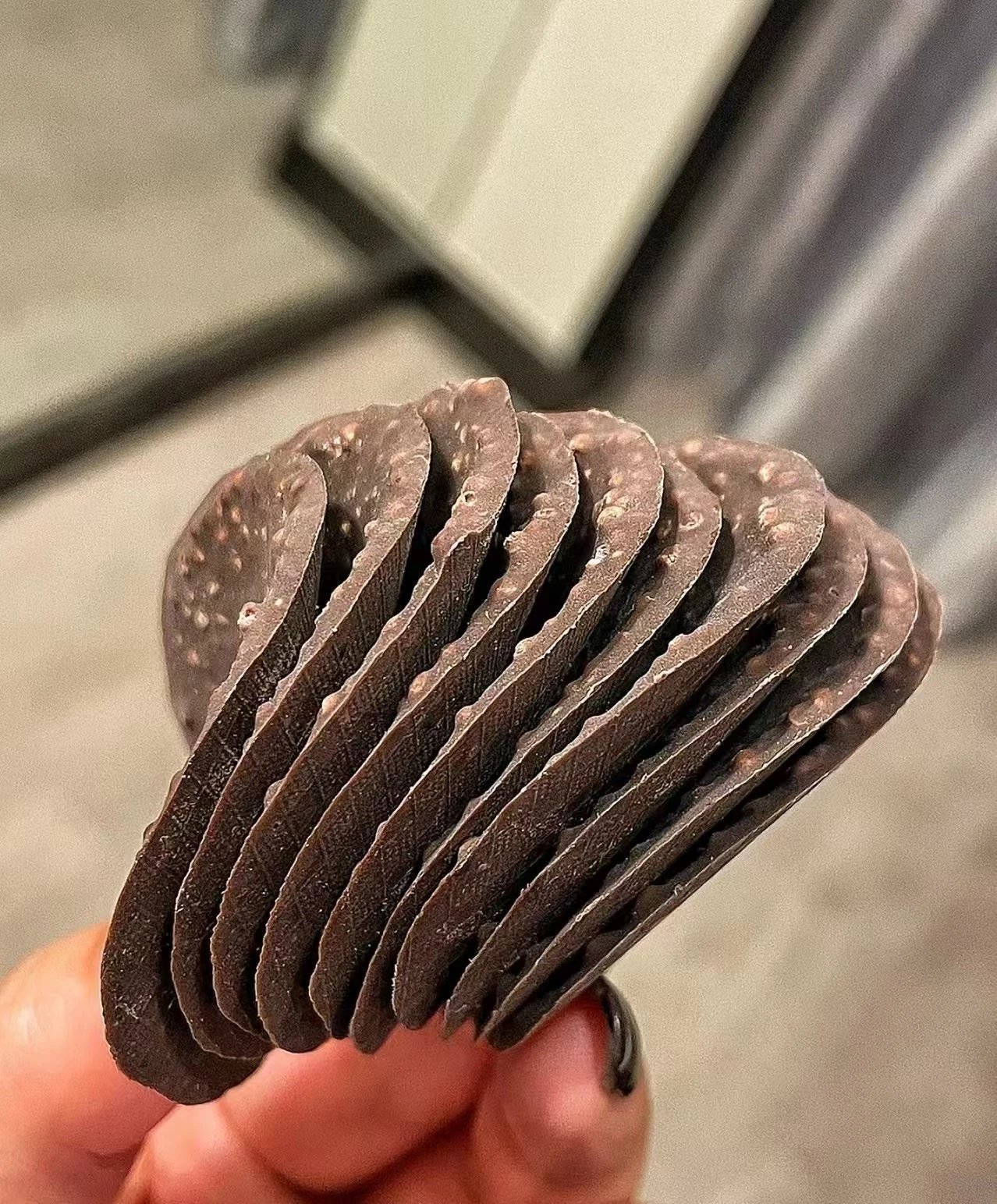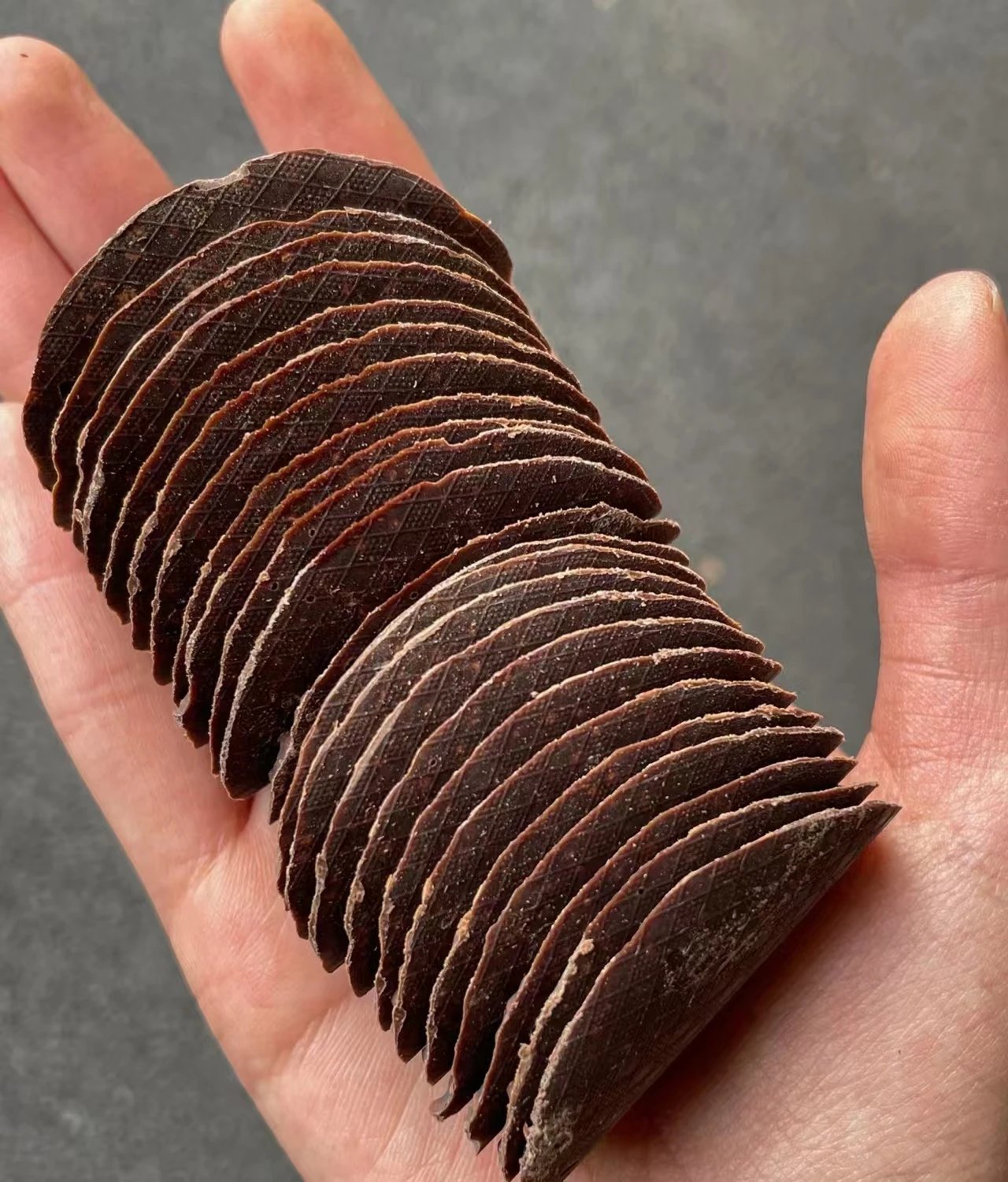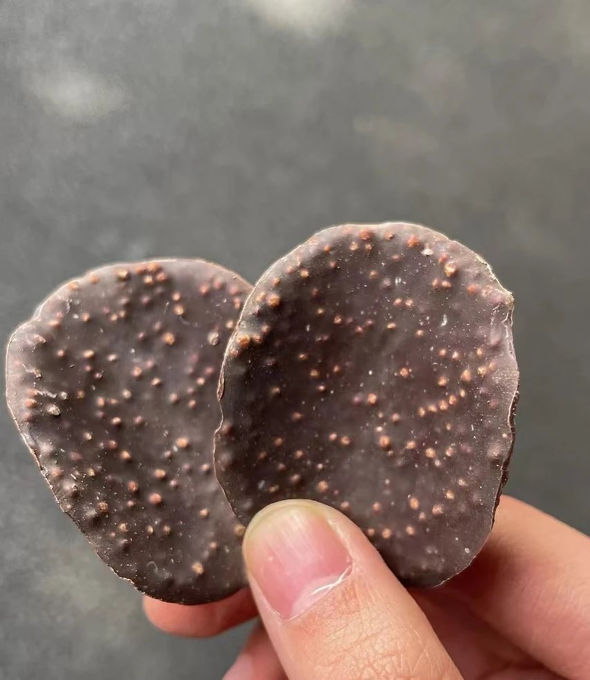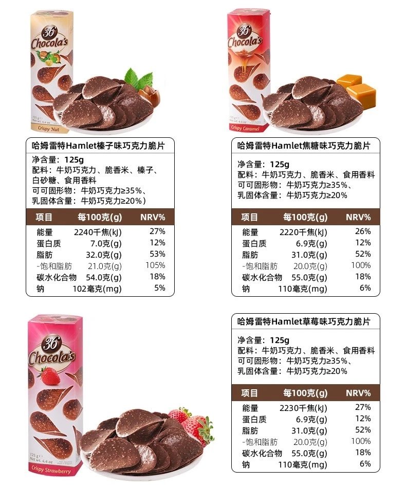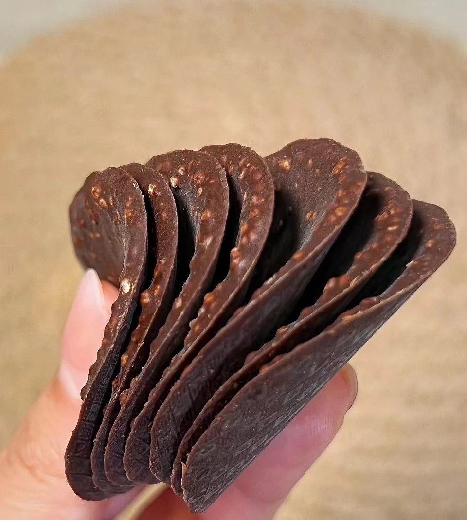 你可能以为这种“薯片”一样的巧克力,里面会是薯片,然而并不是! 每一片都是巧克力 脆香米做的!就像薯片一样嘎嘣嘎嘣脆的! 1mm脆薄片巧克力 甜蜜在舌尖跳舞 ,加上脆香米的碰撞 尽享甜蜜脆香,乐趣加倍