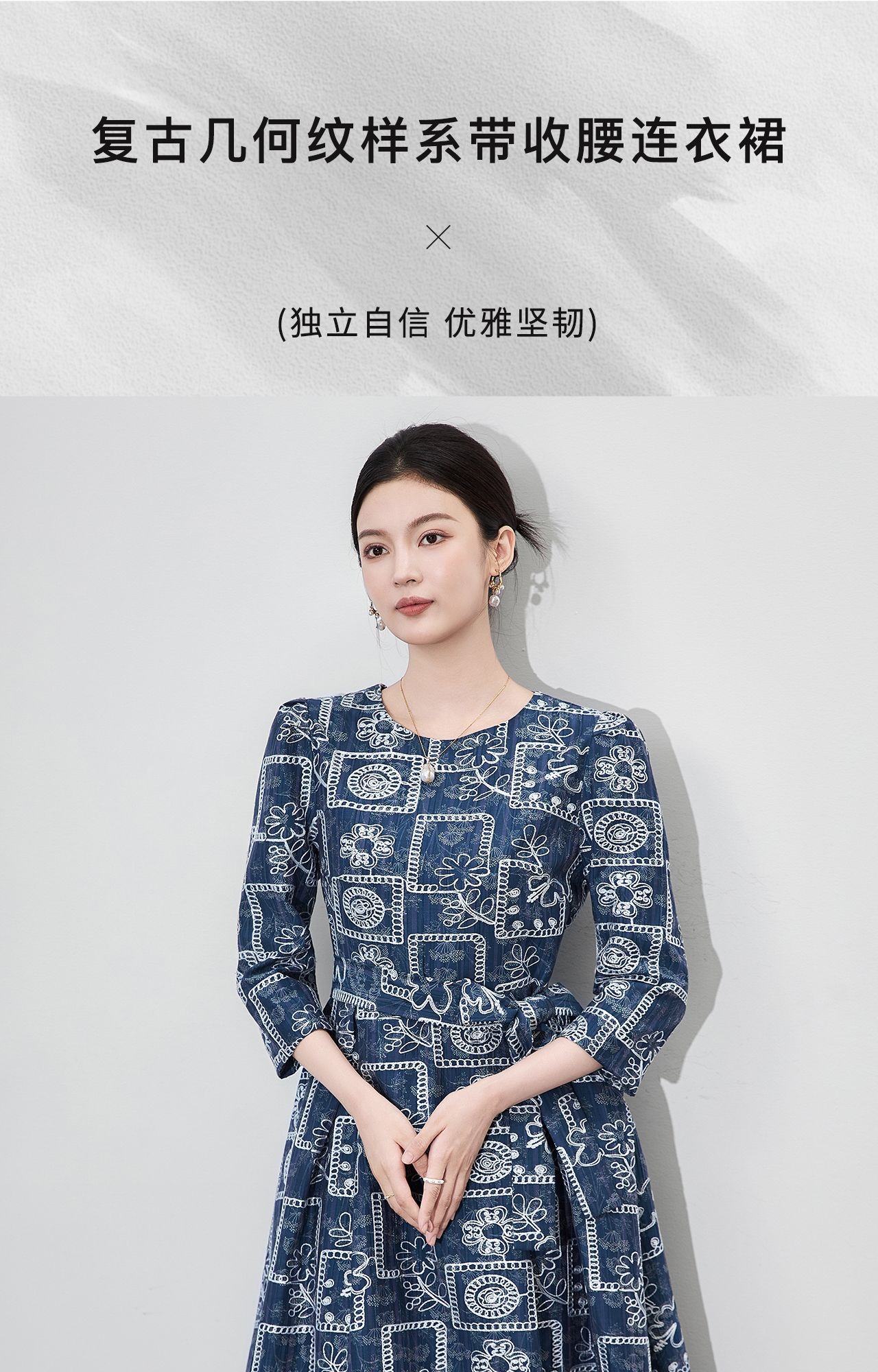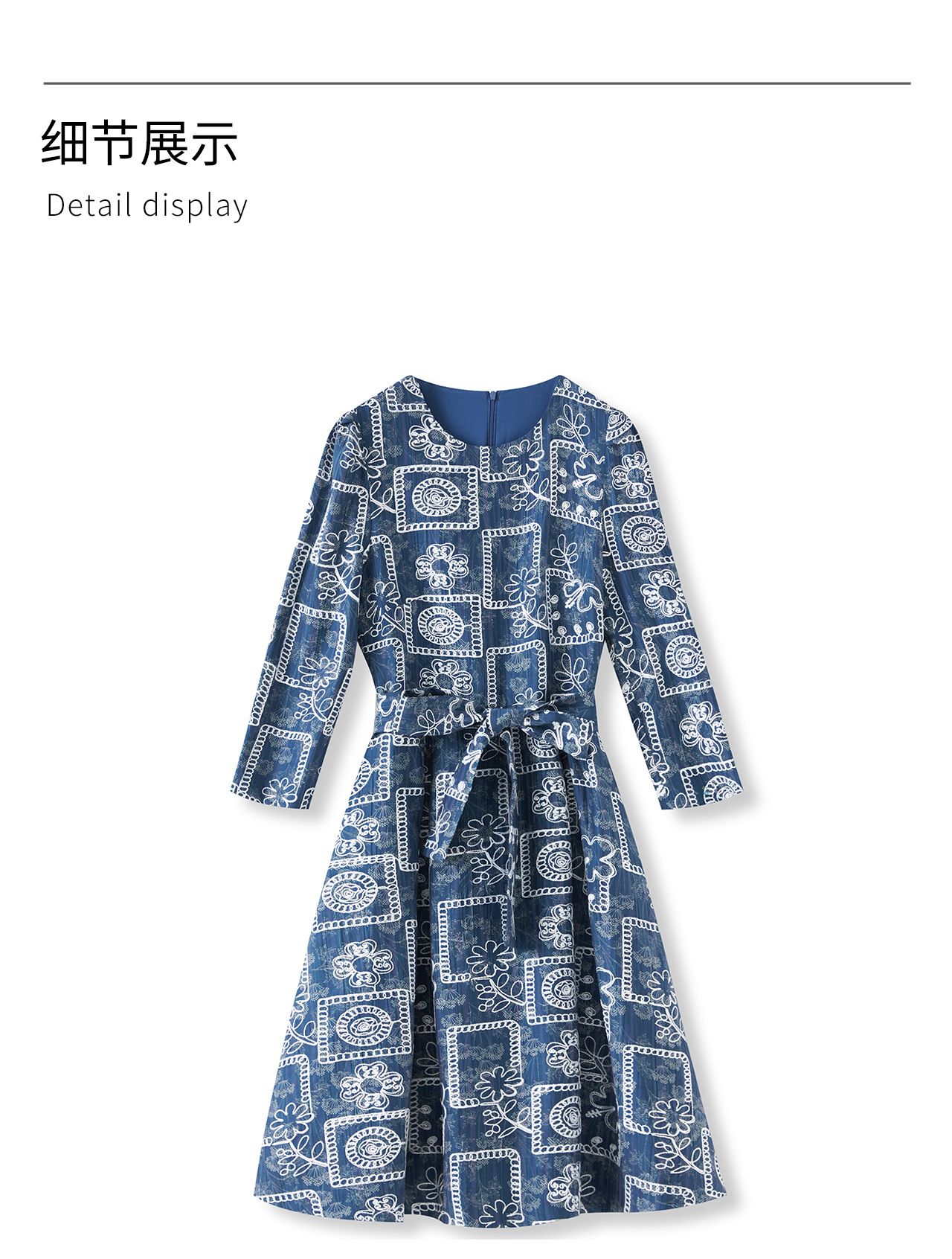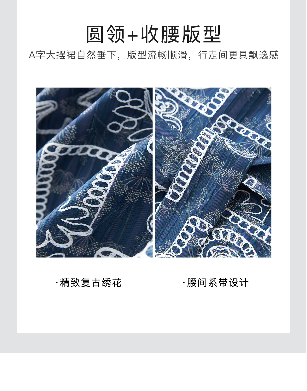 「高货wl」全新升级【铂金会员349/天猫469/差价120】(95649)洛诗琳重工刺绣盘花连衣裙2025秋季气质收腰系带显瘦A字裙