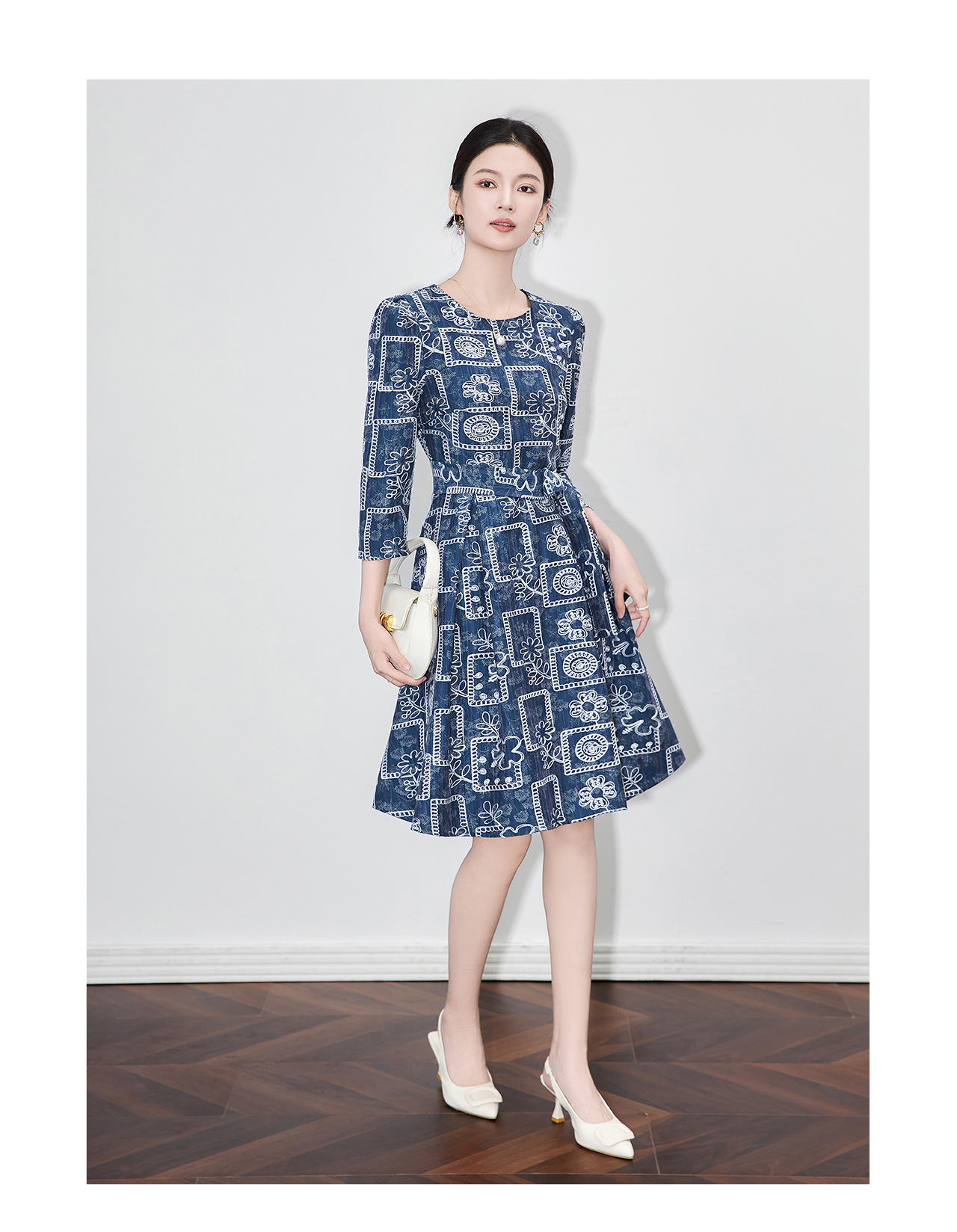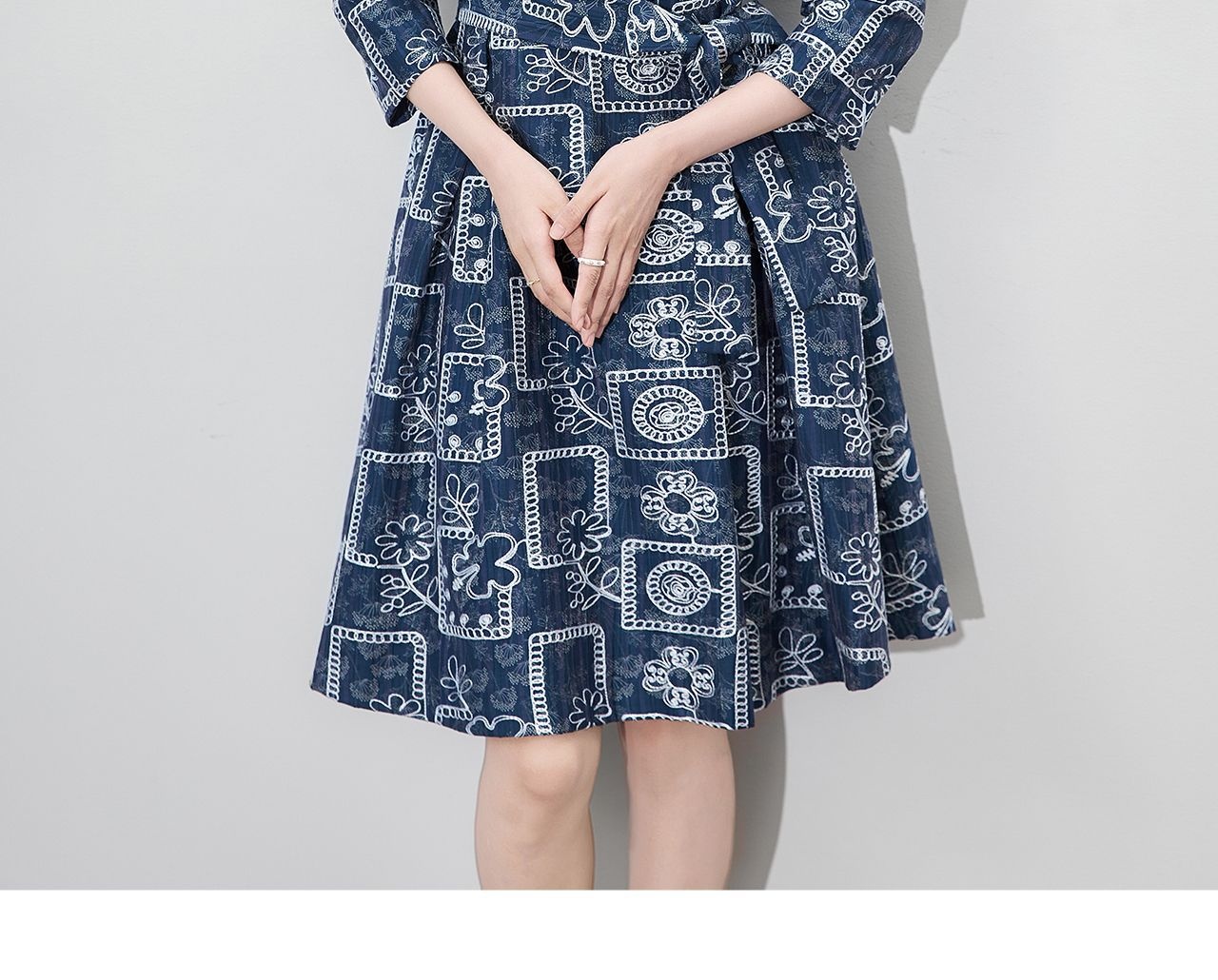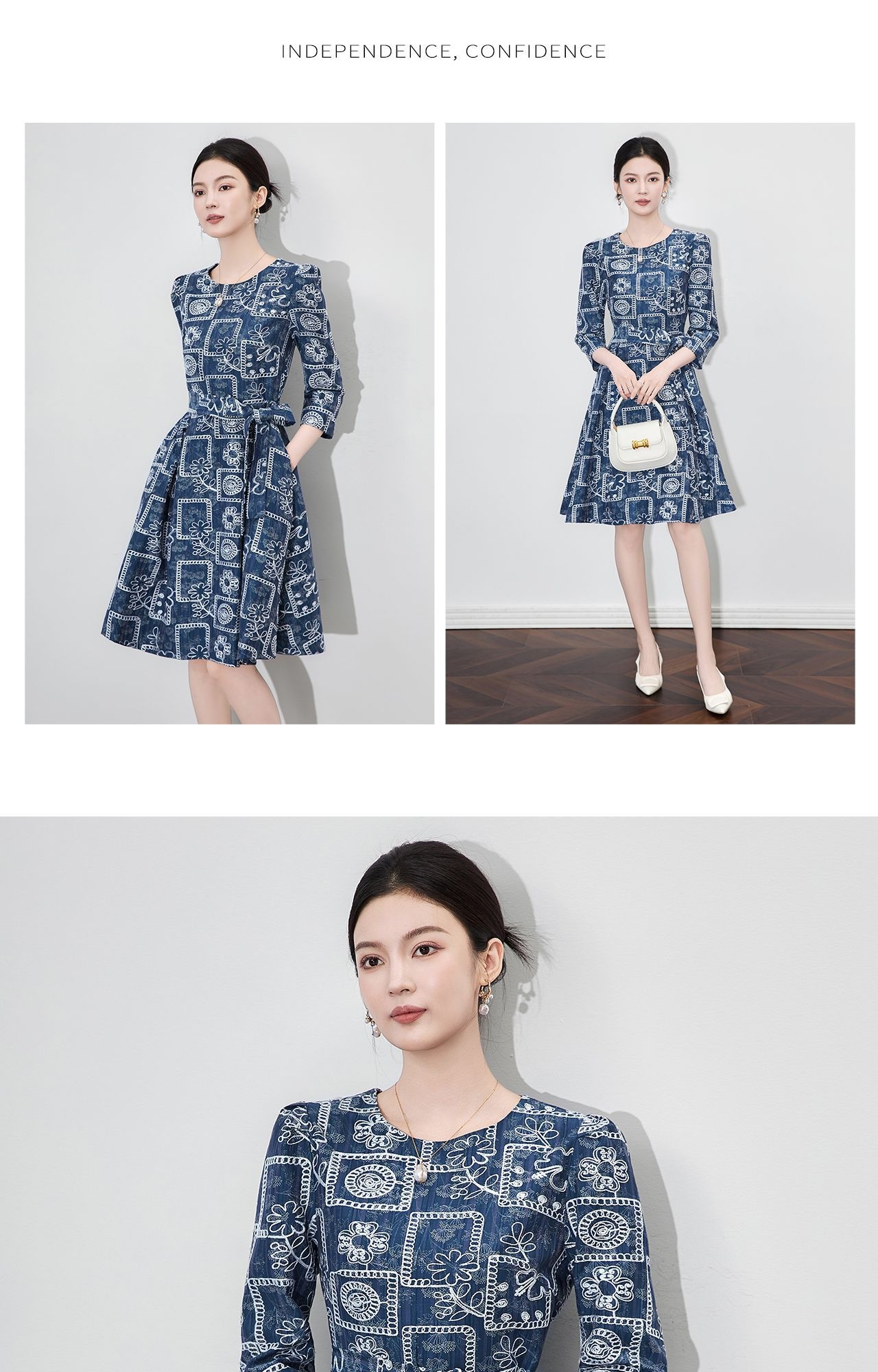 「高货wl」全新升级【铂金会员349/天猫469/差价120】(95649)洛诗琳重工刺绣盘花连衣裙2025秋季气质收腰系带显瘦A字裙