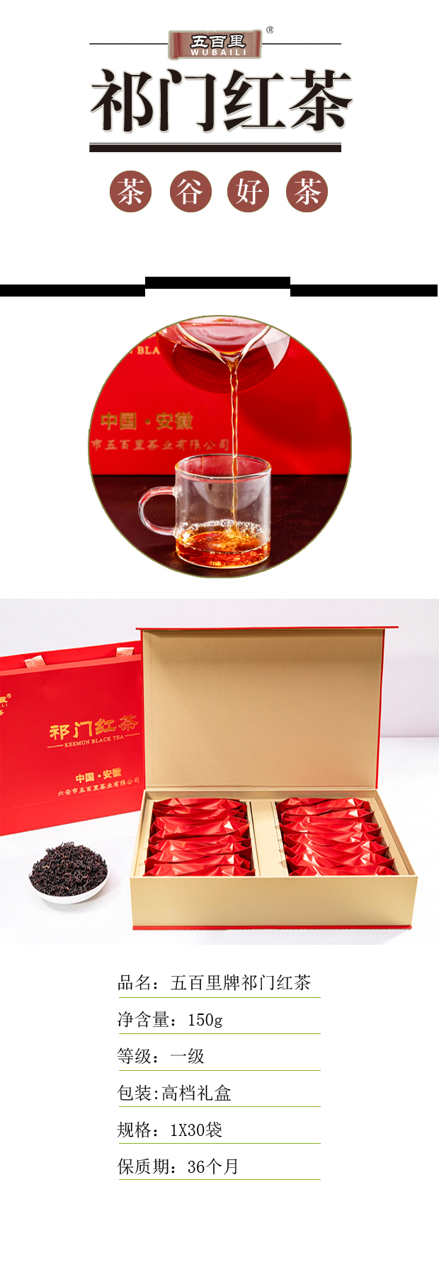 五百里 祁门红茶 一级新茶 150g (5gX30泡)