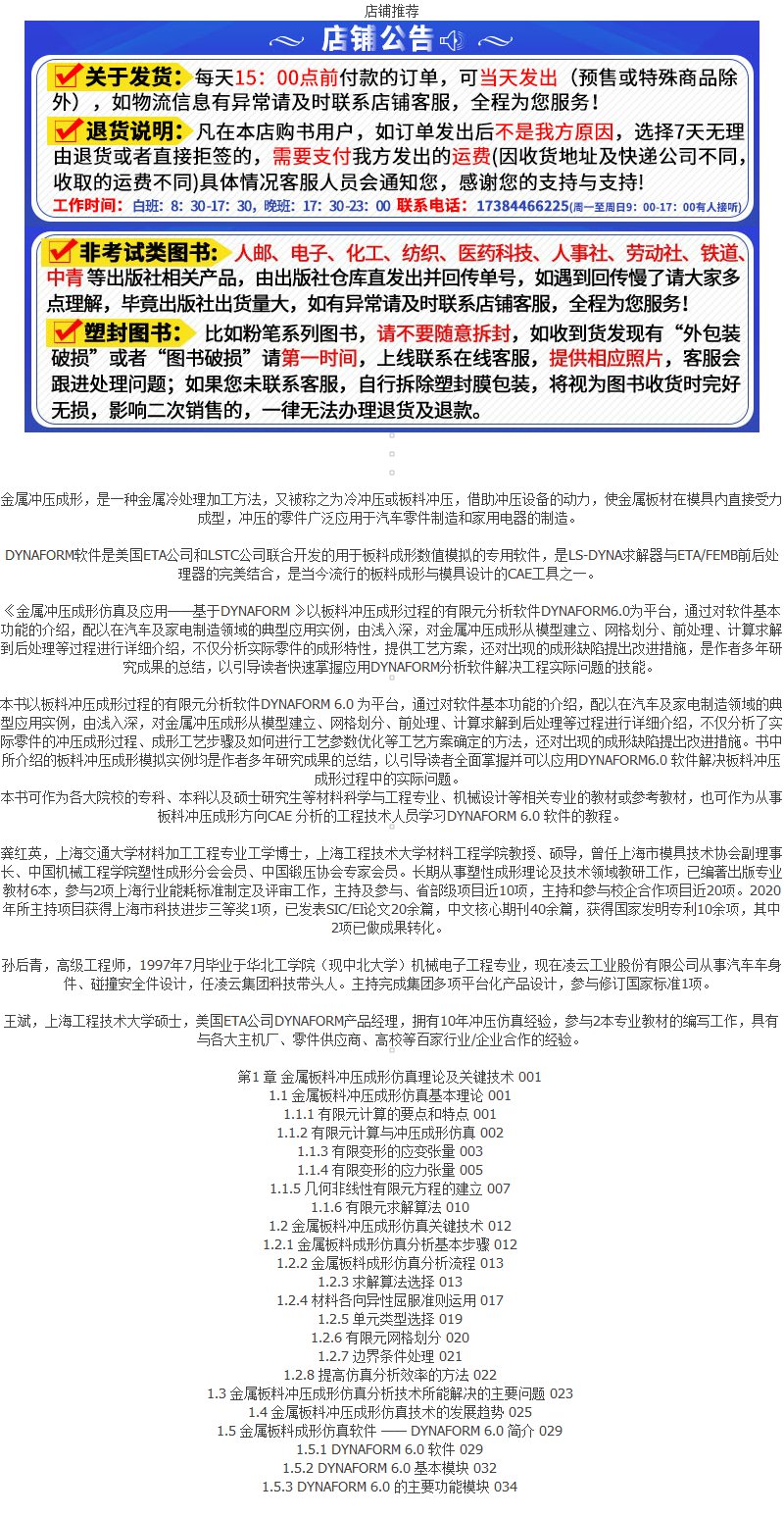 金属冲压成形仿真及应用 基于DYNAFORM 应用DYNAFORM6.0软件解决板料冲压成形 材料科学与工程专业 械设计等专业应用技术书籍 化学工业出版社 9787122399977