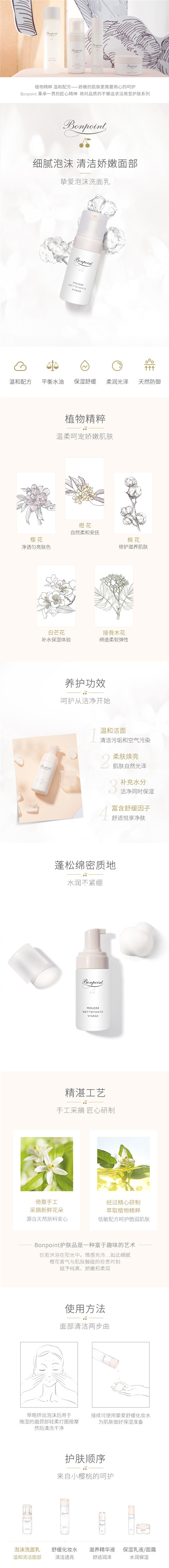 Bonpoint泡沫洗面奶深层清洁洁面乳保湿温和洁颜慕斯洗面乳100ml bp