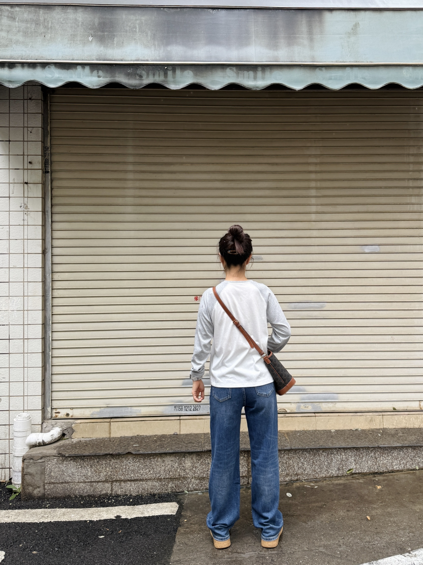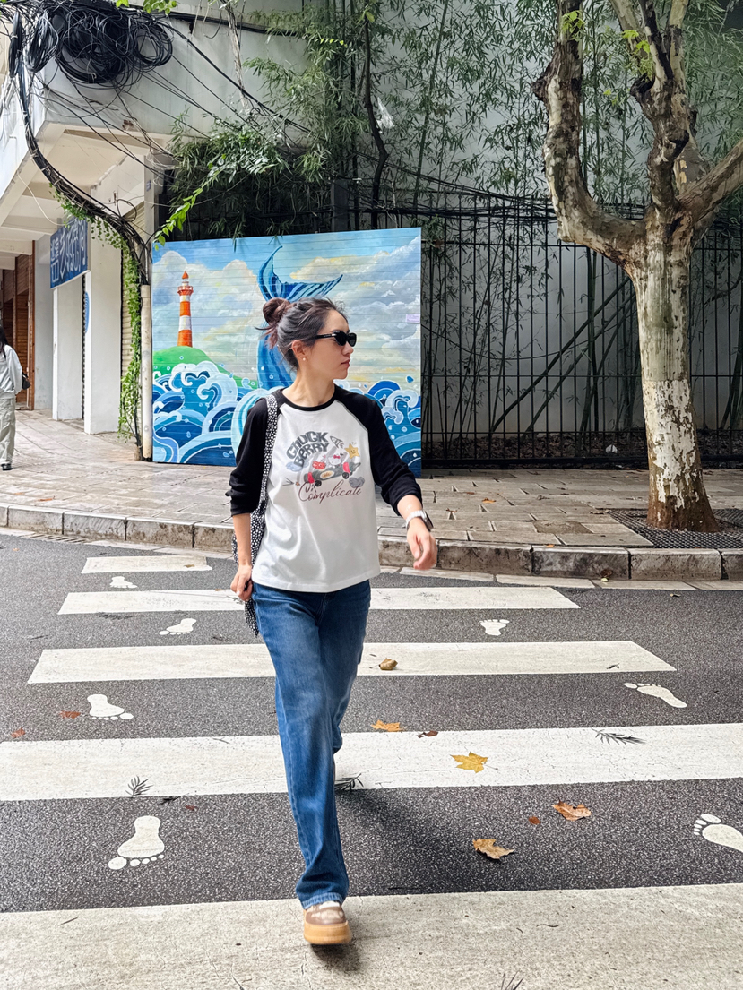 作为四季衣橱的通用百搭单品,不得不入这款插肩长袖T恤!尤其是忽冷忽热的换季时节,有这样一件T恤会格外省心整体松弛慵懒的很gao级!单穿一点不局促,相反是极简的意味做内搭,也可以搭在风衣外套里面,适配度满分!属于日常穿搭里面的全勤选手!