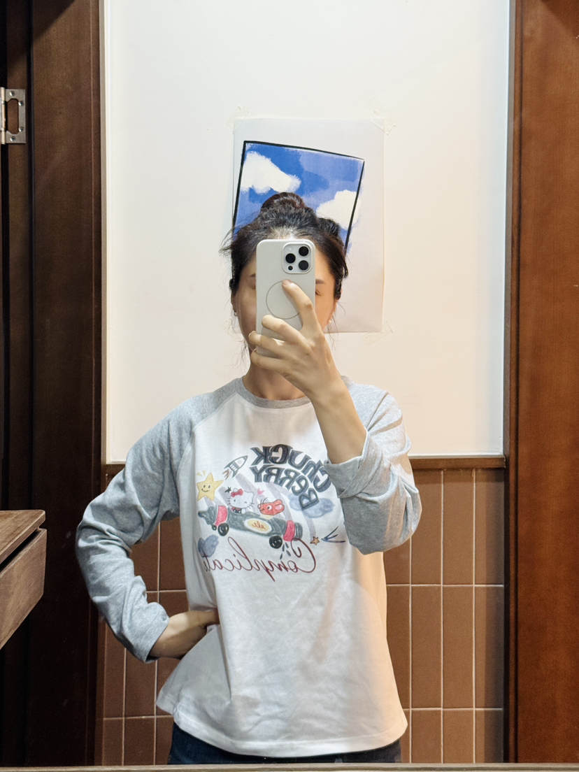 超喜欢这个图案!!做的是合身上衣款,区别于其它家的短款。浅灰很好看!黑色也不错,俩色都自留,个人爱浅灰!!面料质感真的好,不是超薄的棉。