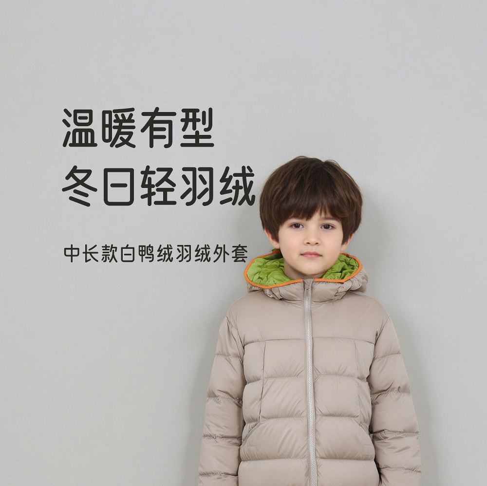 【商场同款】英氏儿童羽绒服长款外套秋冬保暖防寒连帽休闲新款