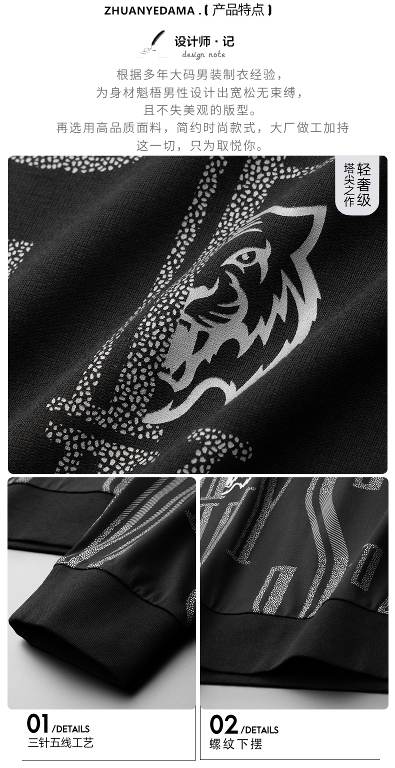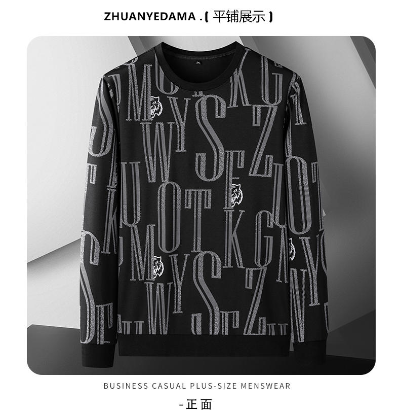 【Q】【新款DDA】大依优型大码满印长袖卫衣圆领套头加肥加大宽松休闲上衣男士潮流