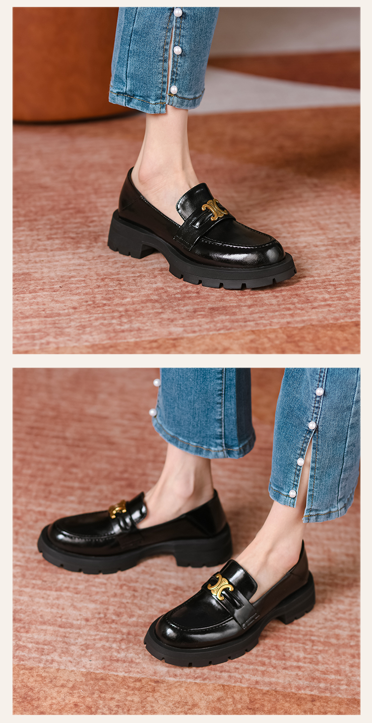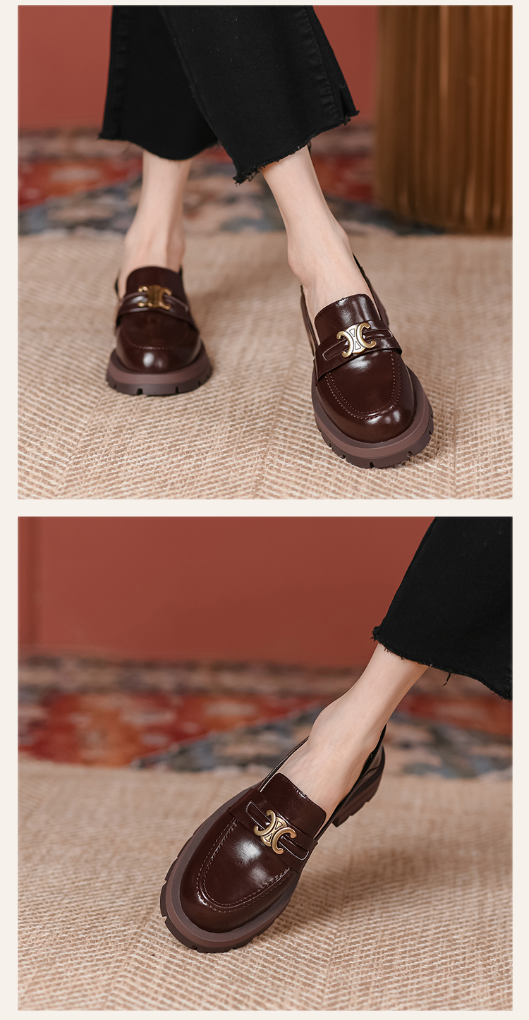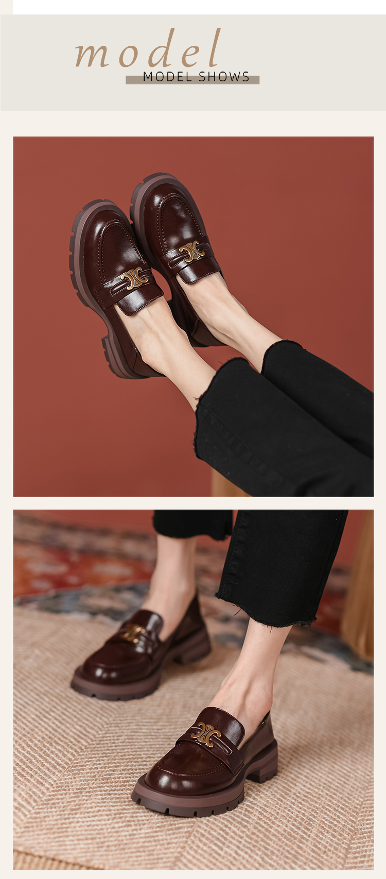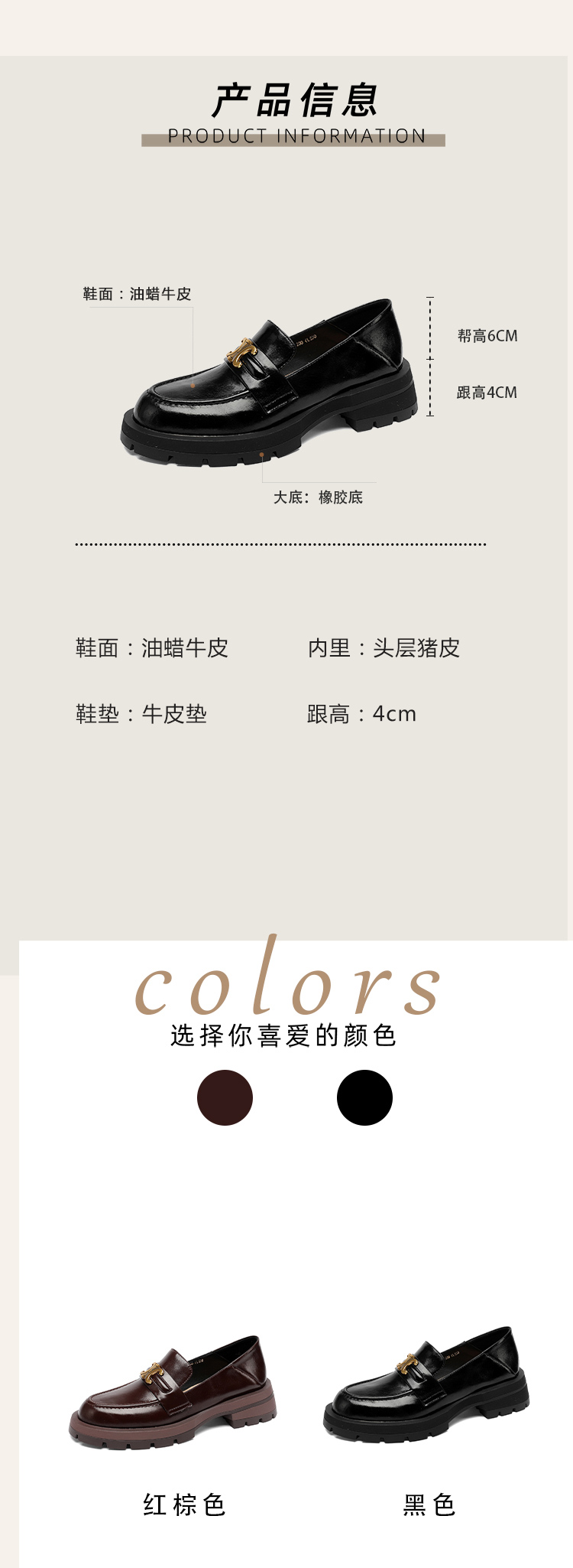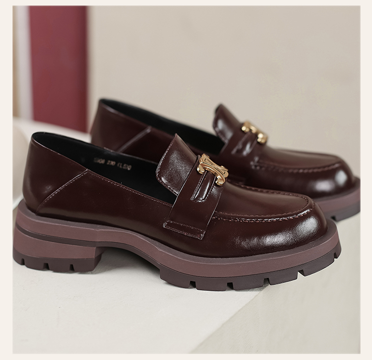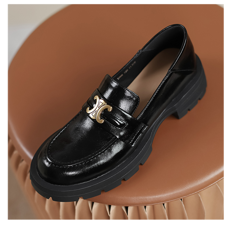 春季新款,真皮圆头厚跟厚底乐福鞋BY-H908