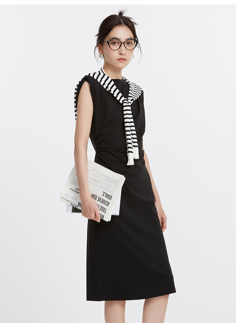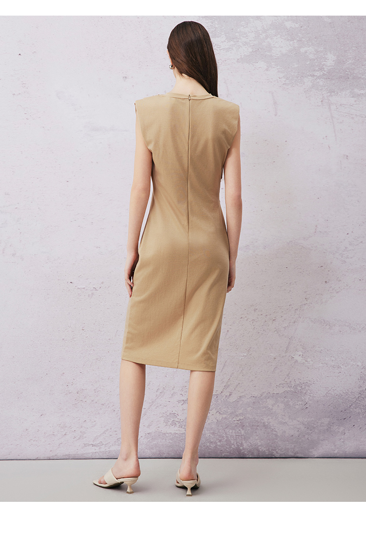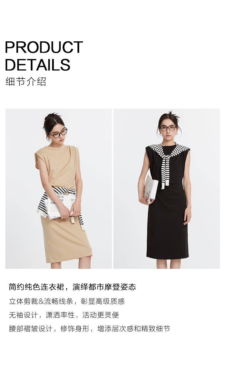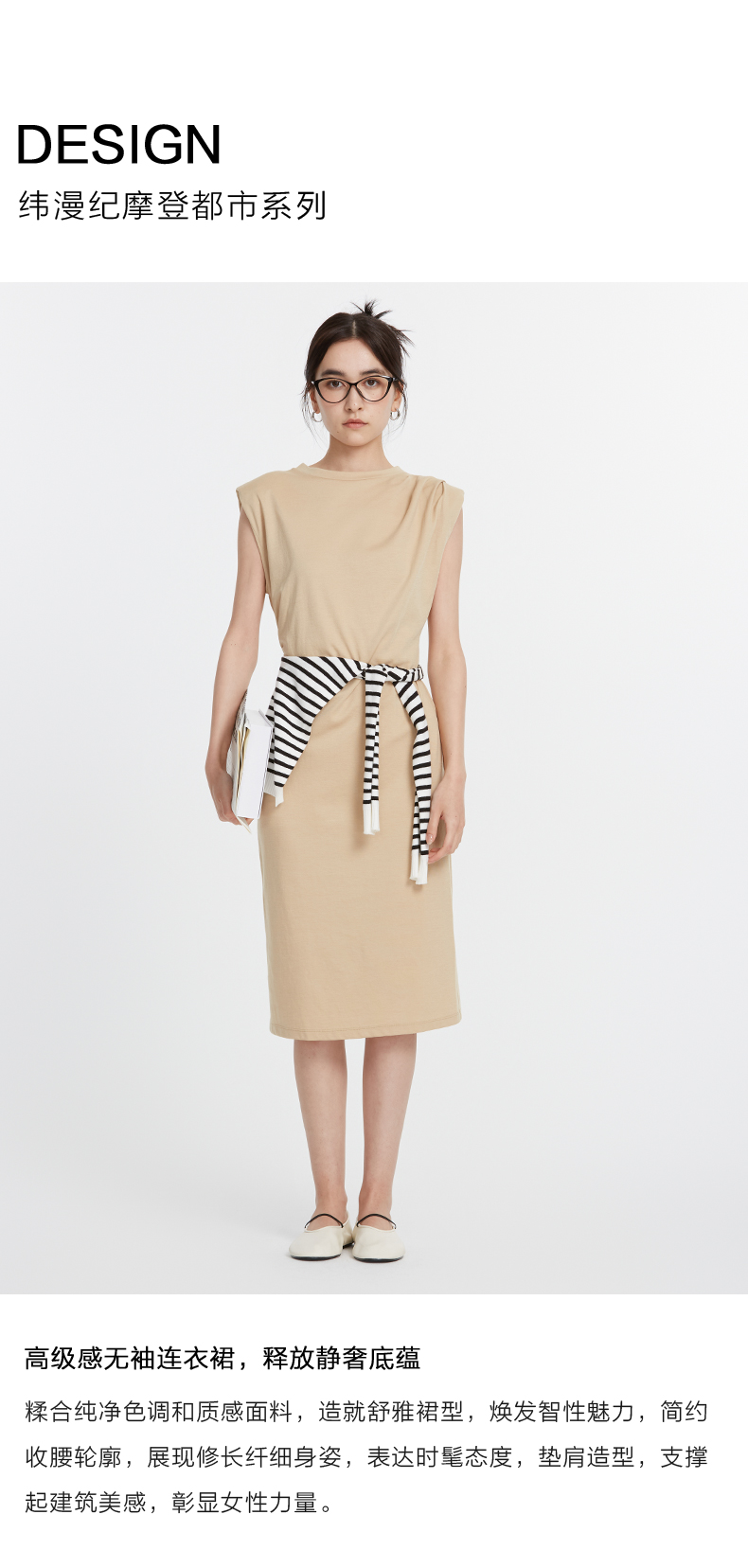 VIMAGE纬漫纪夏季新款时尚通勤无袖收腰显瘦连衣裙V2107728