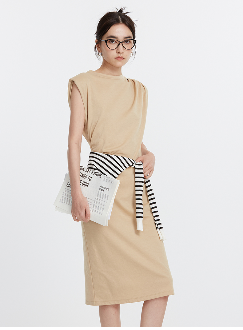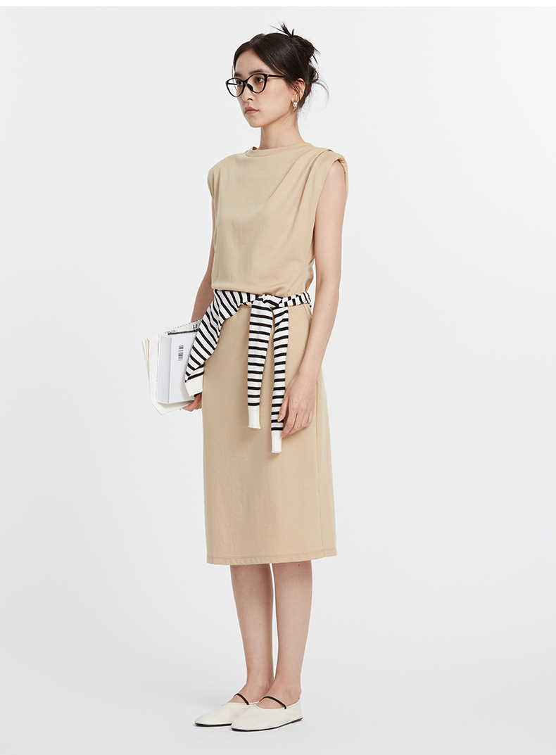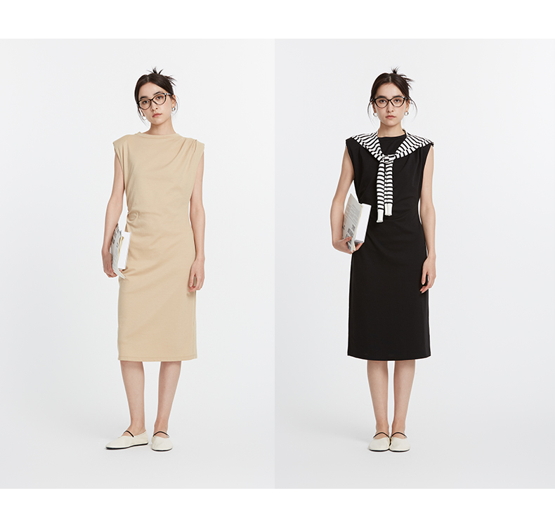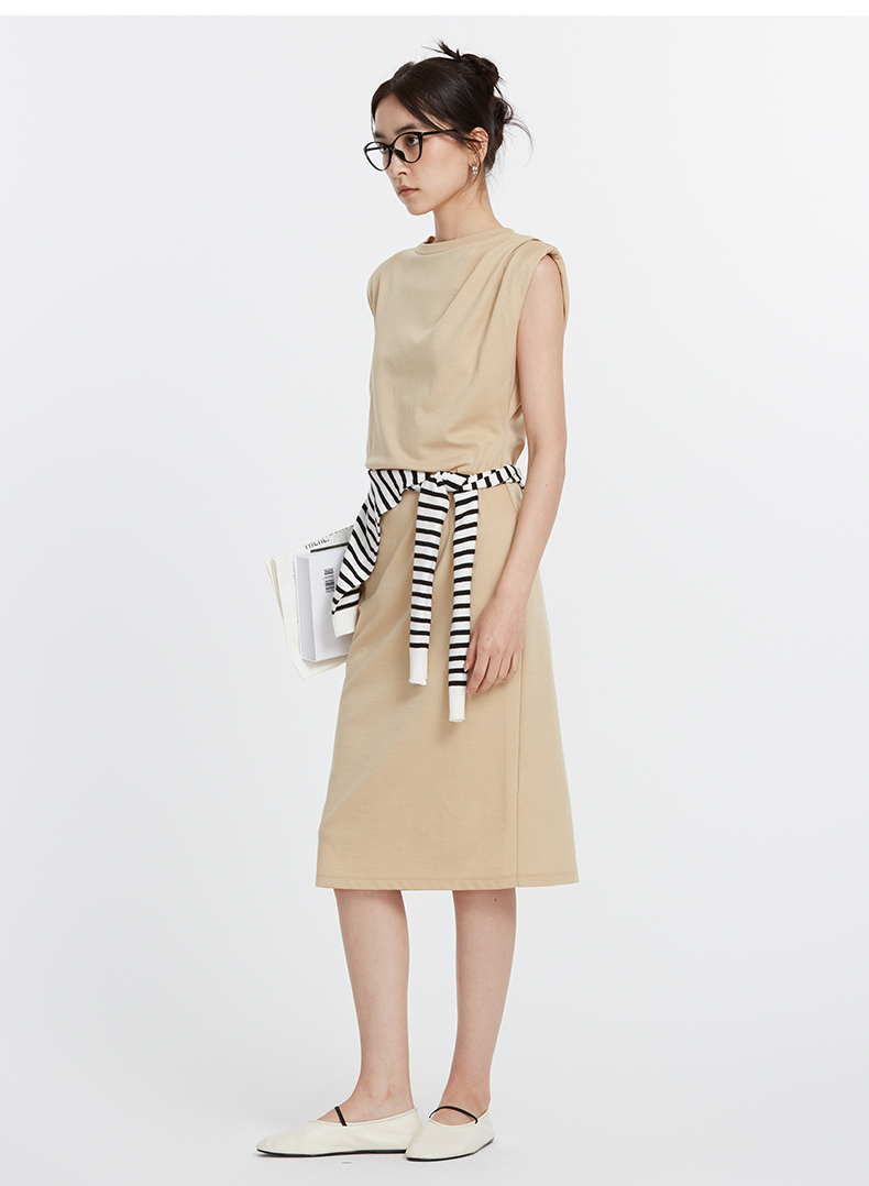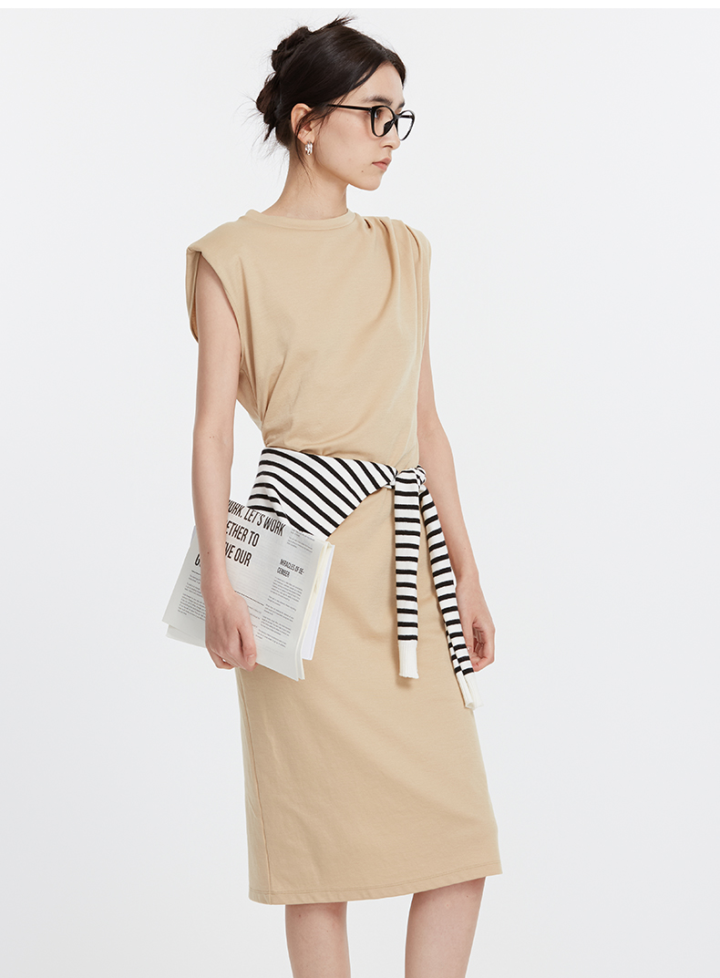 VIMAGE纬漫纪夏季新款时尚通勤无袖收腰显瘦连衣裙V2107728