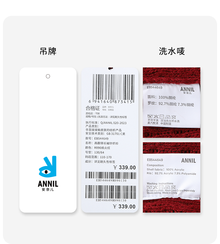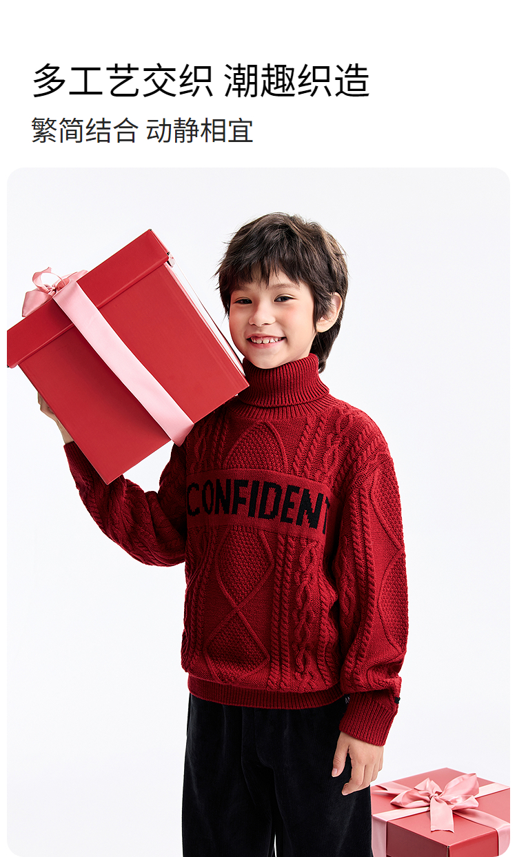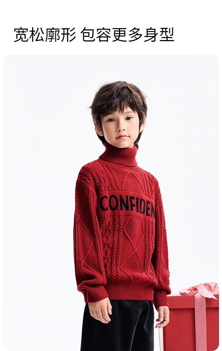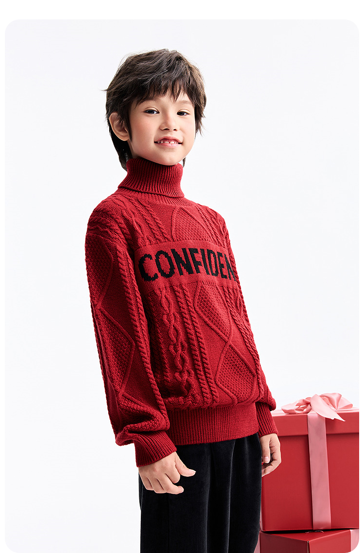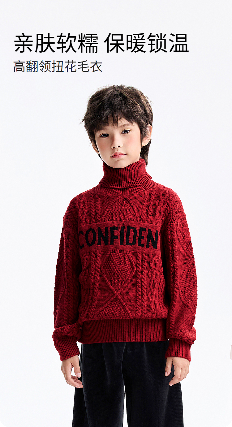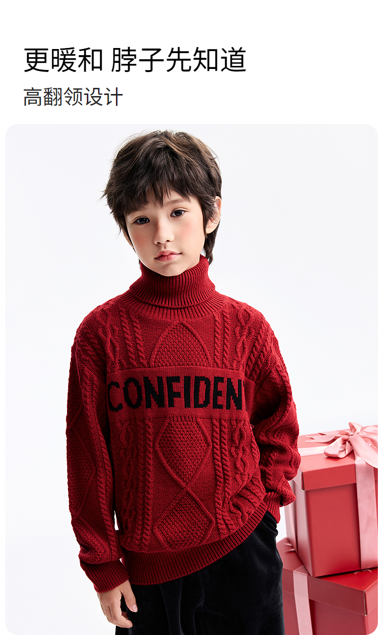 男童高翻领长袖针织衫冬季新款安奈儿童装EB544649