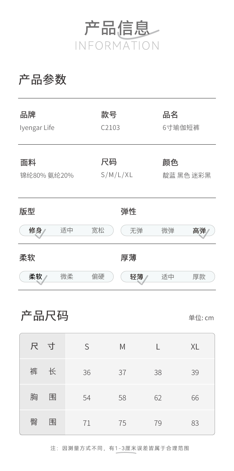 艾扬格life C2103/ 6寸瑜伽短裤 运动短裤