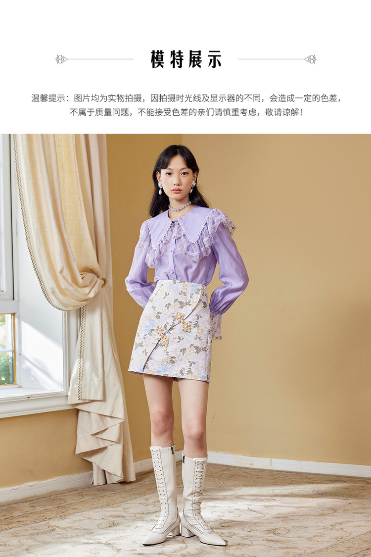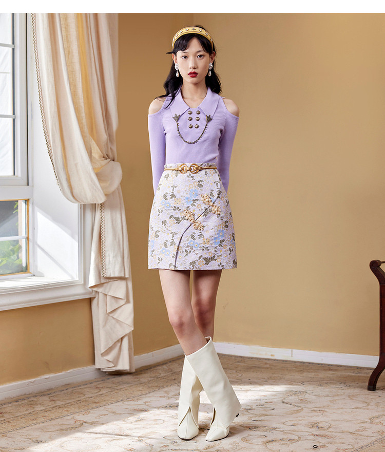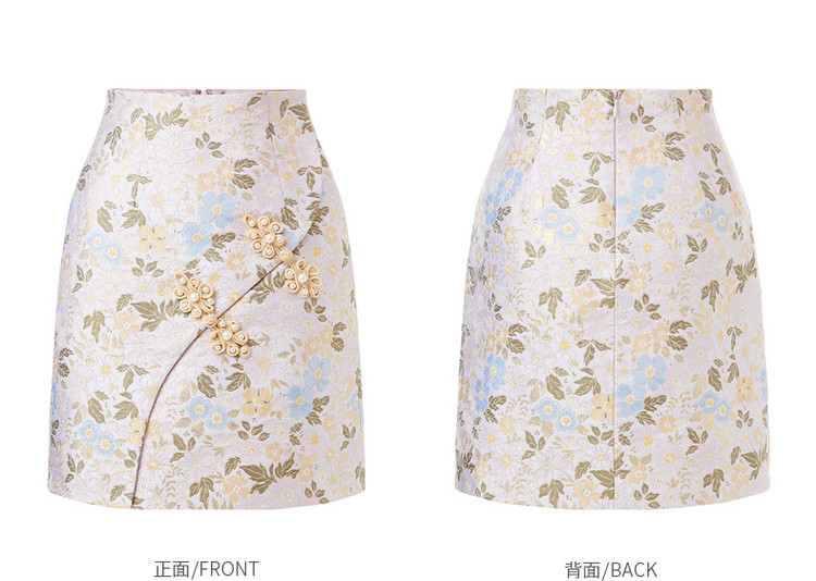 MAXRIENY复古提花盘口国风短裙2022秋高腰重工半身裙MC87SK540F70