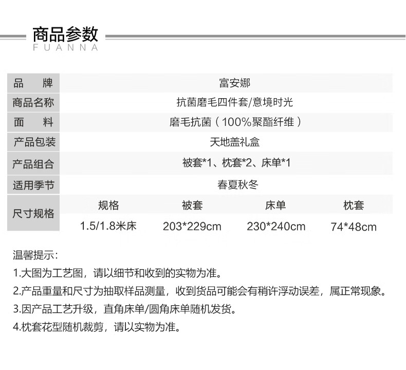 【彤橙】富安娜(FUANNA)磨毛四件套-意境时光