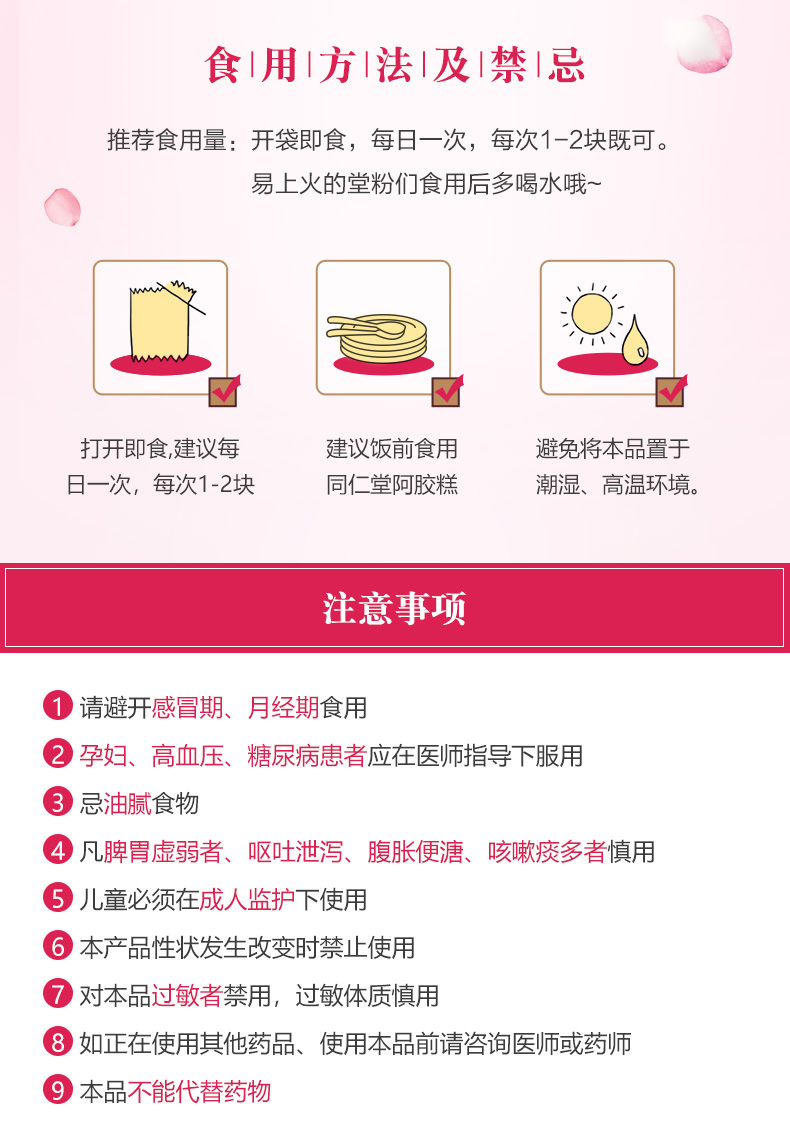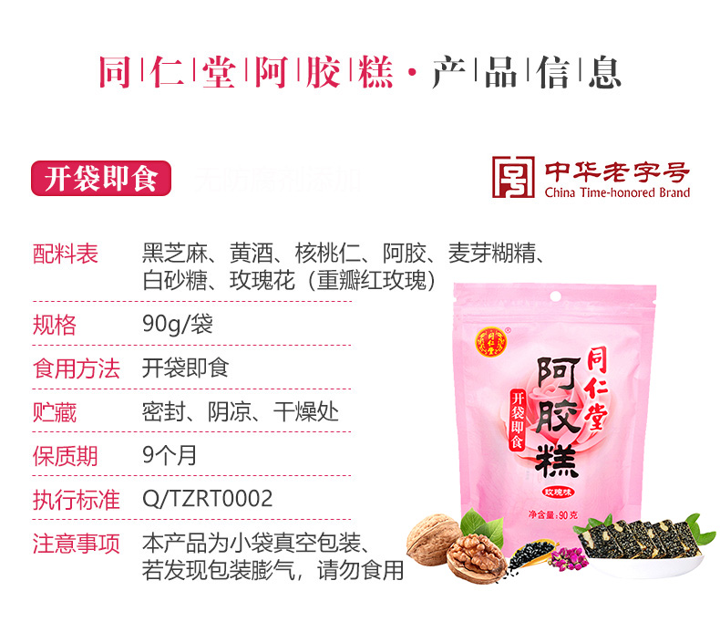 北京同仁堂阿胶糕玫瑰味90g 正品驴皮固元膏 传统即食