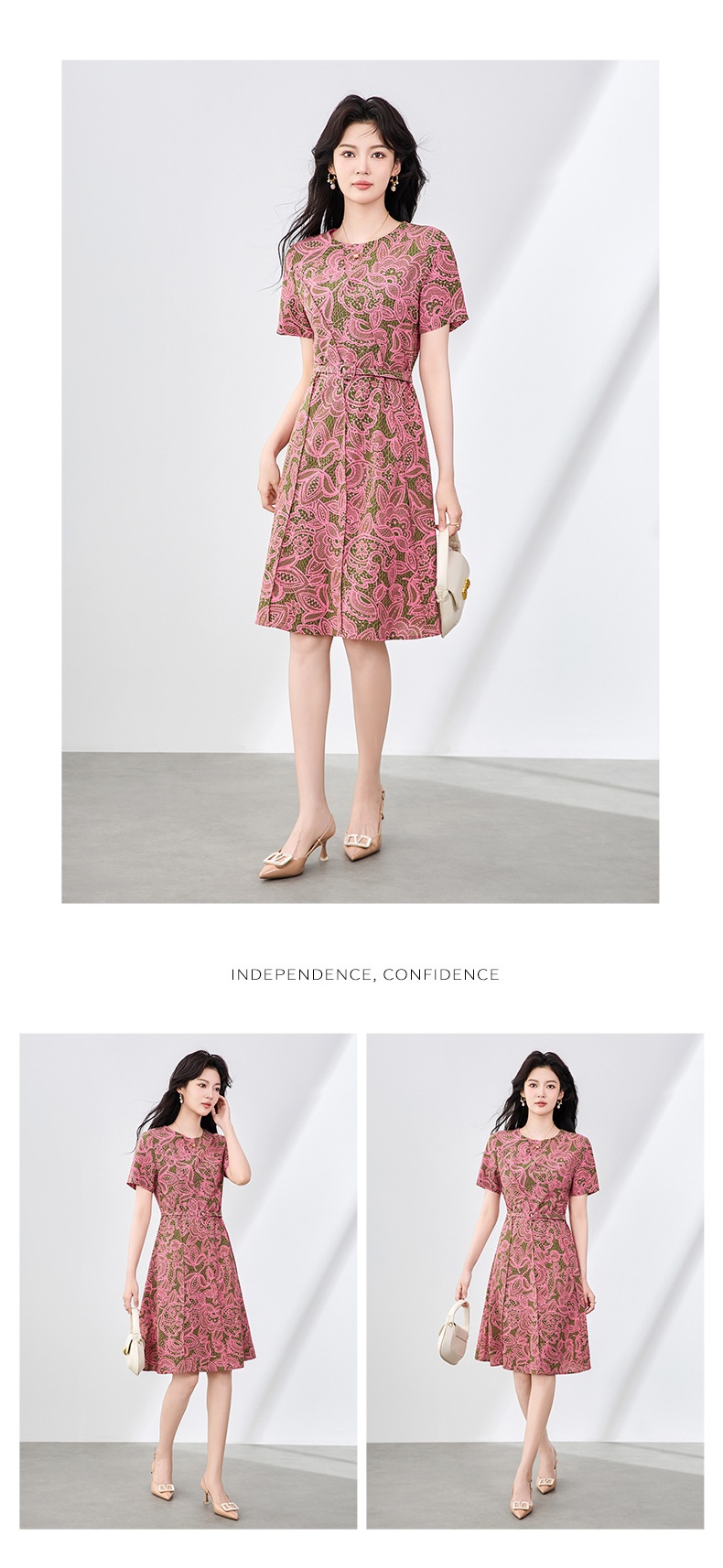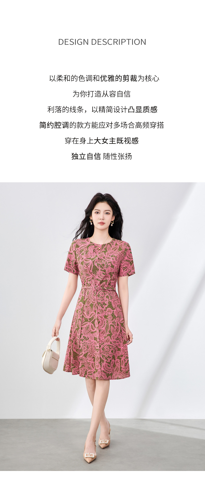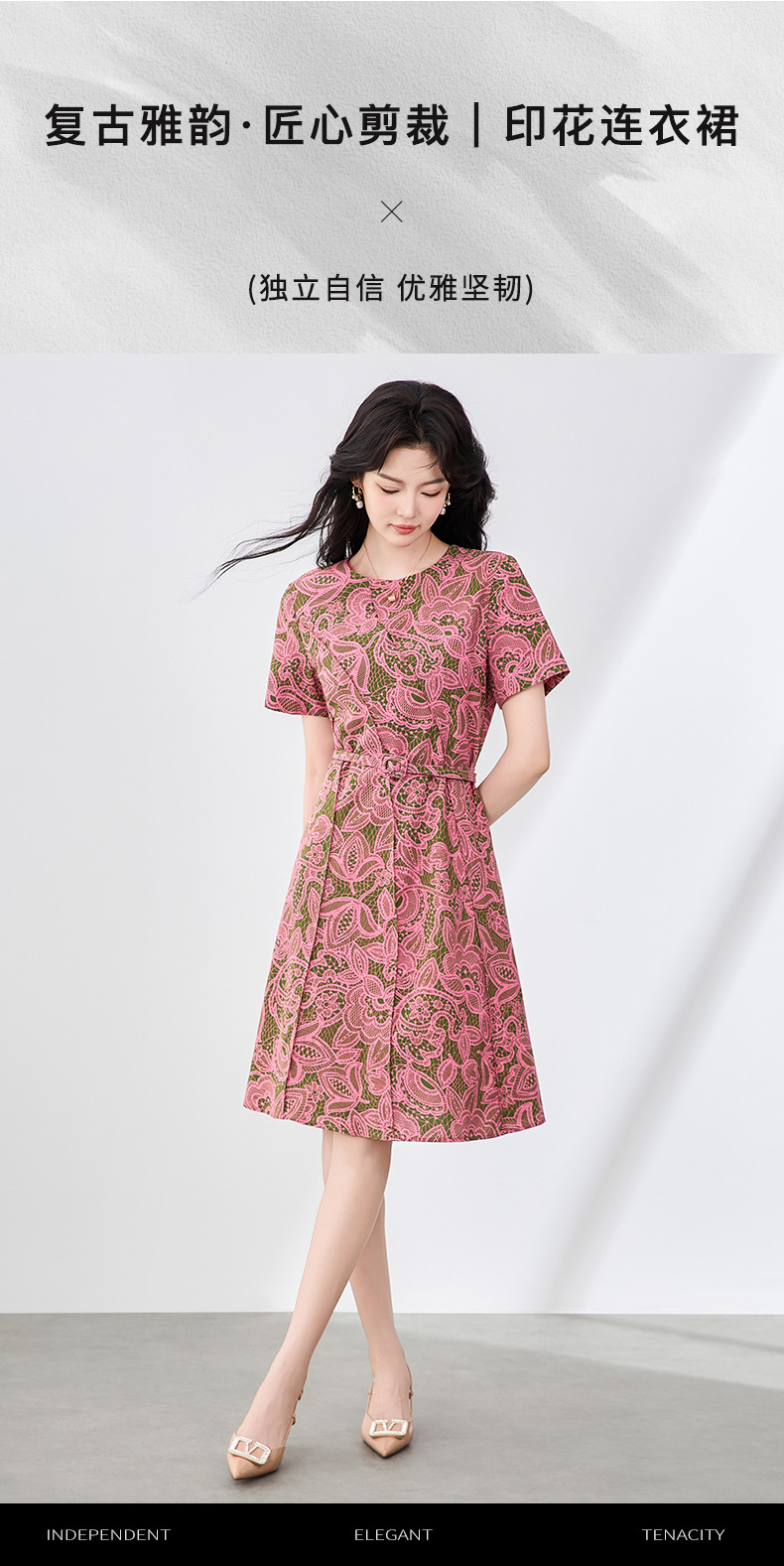 「高货wl」全新升级【铂金会员293/天猫399/差价106】(15858)洛诗琳时尚复古印花连衣裙2025夏季设计感收腰显瘦裙子