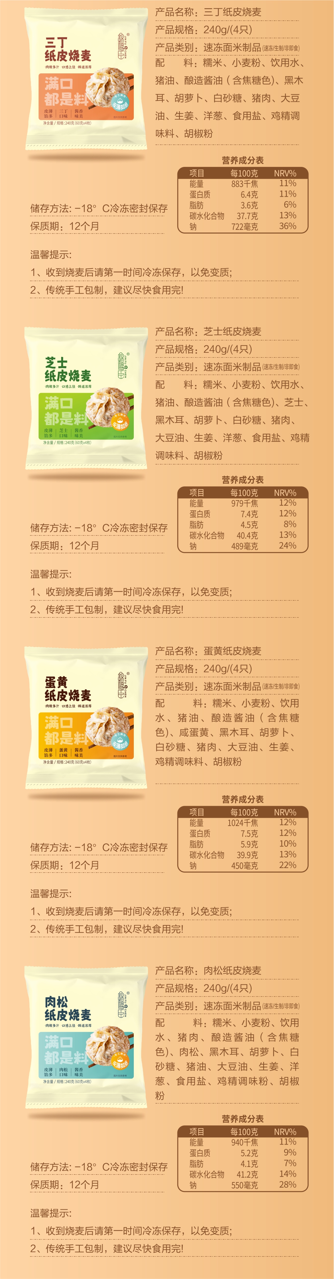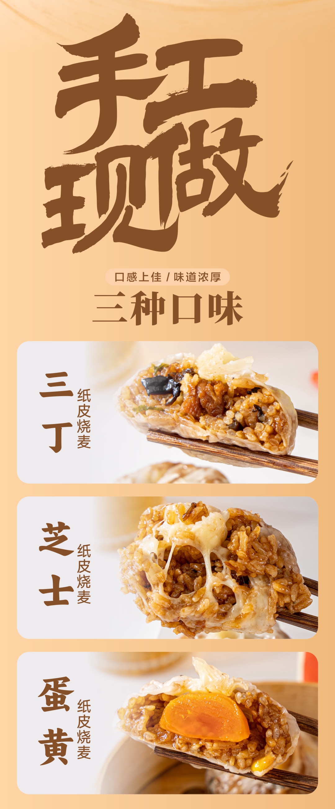 【顺丰发货】手工现做纸皮烧麦 皮薄馅多 采用新鲜猪前腿肉品质糯米手工包作 三丁、芝士、蛋黄、肉松味