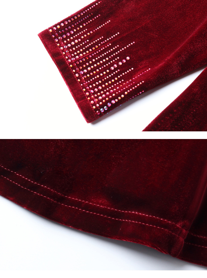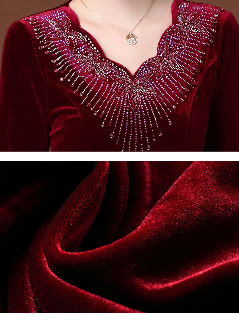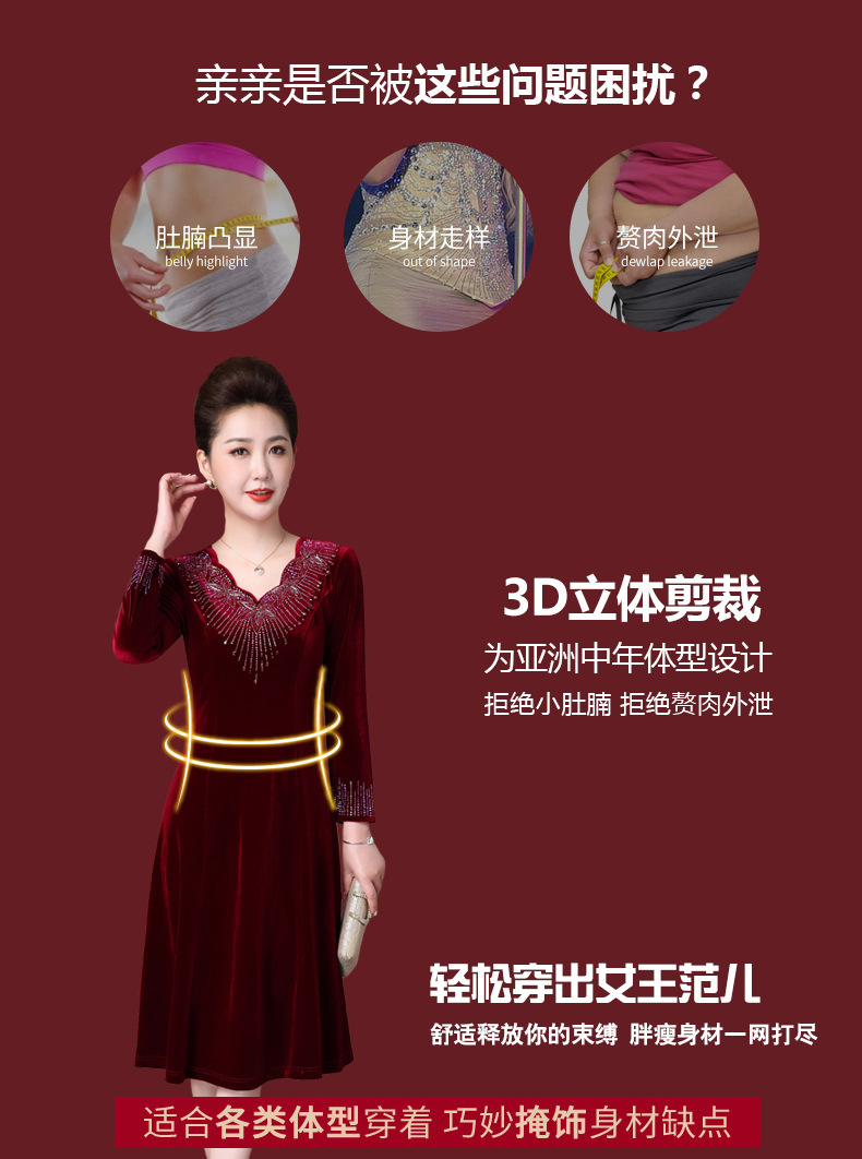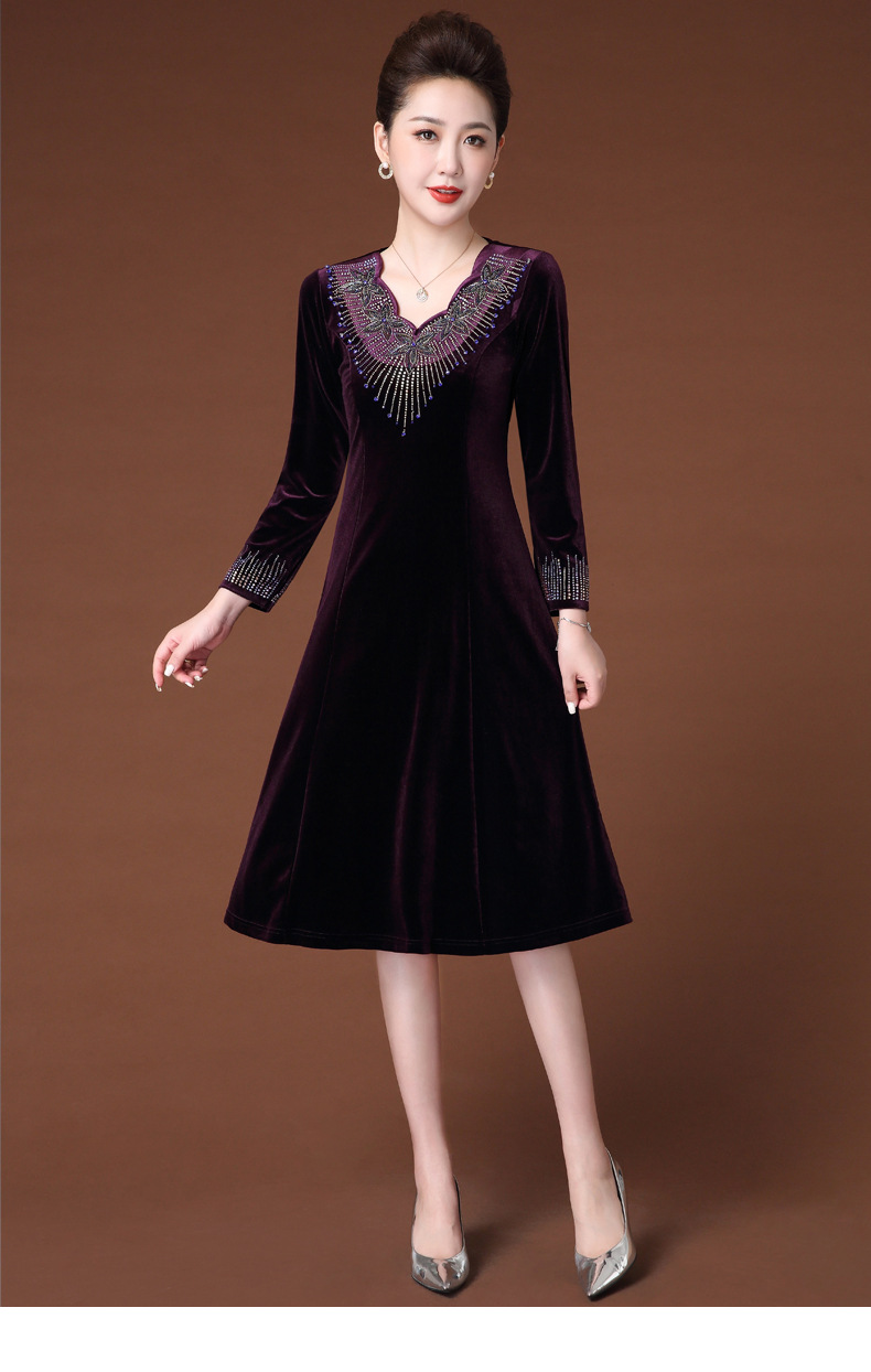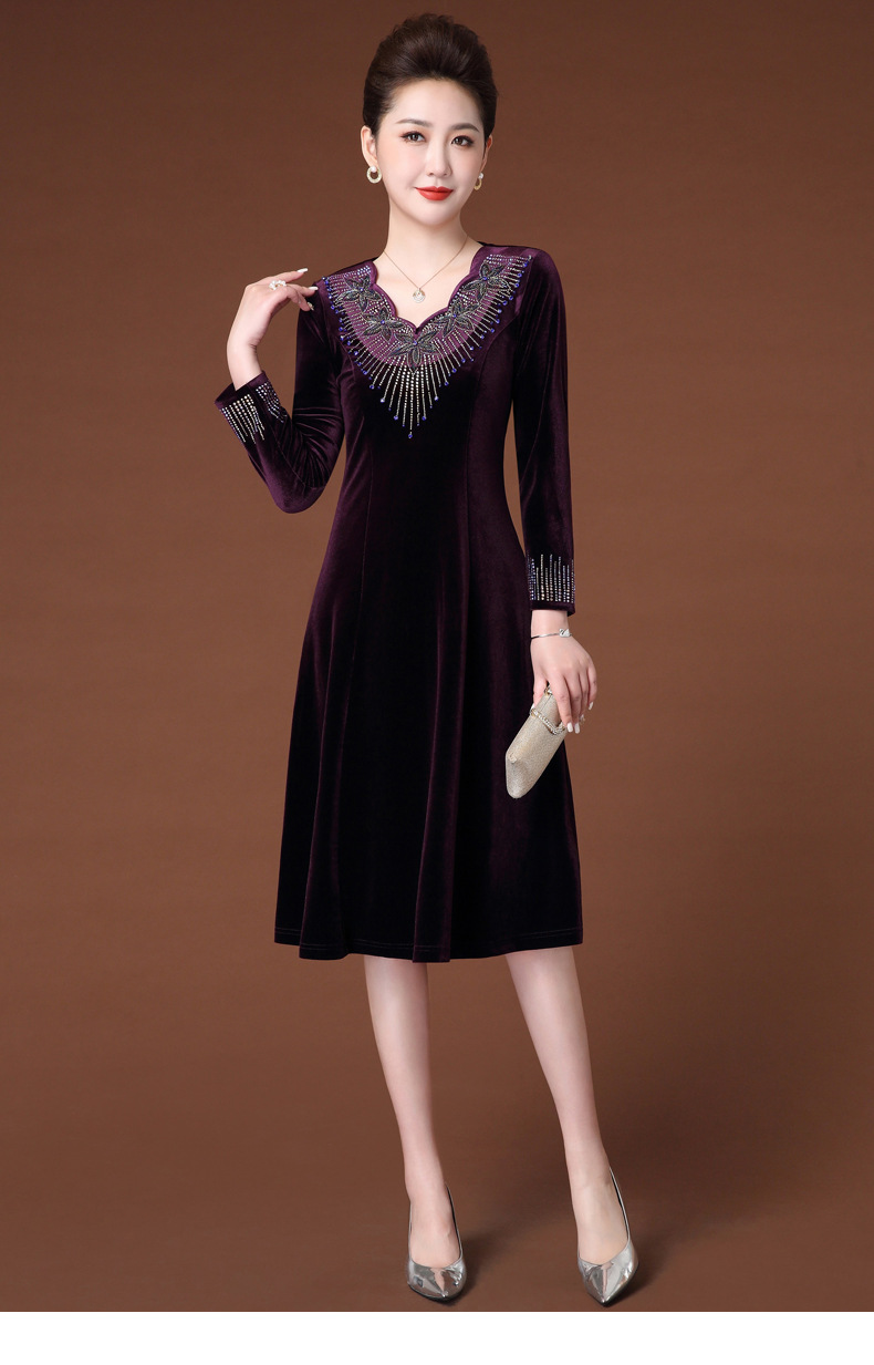 JY-JY201冬装新款V领红色丝绒气质高贵大码妈妈装旗袍加绒连衣裙