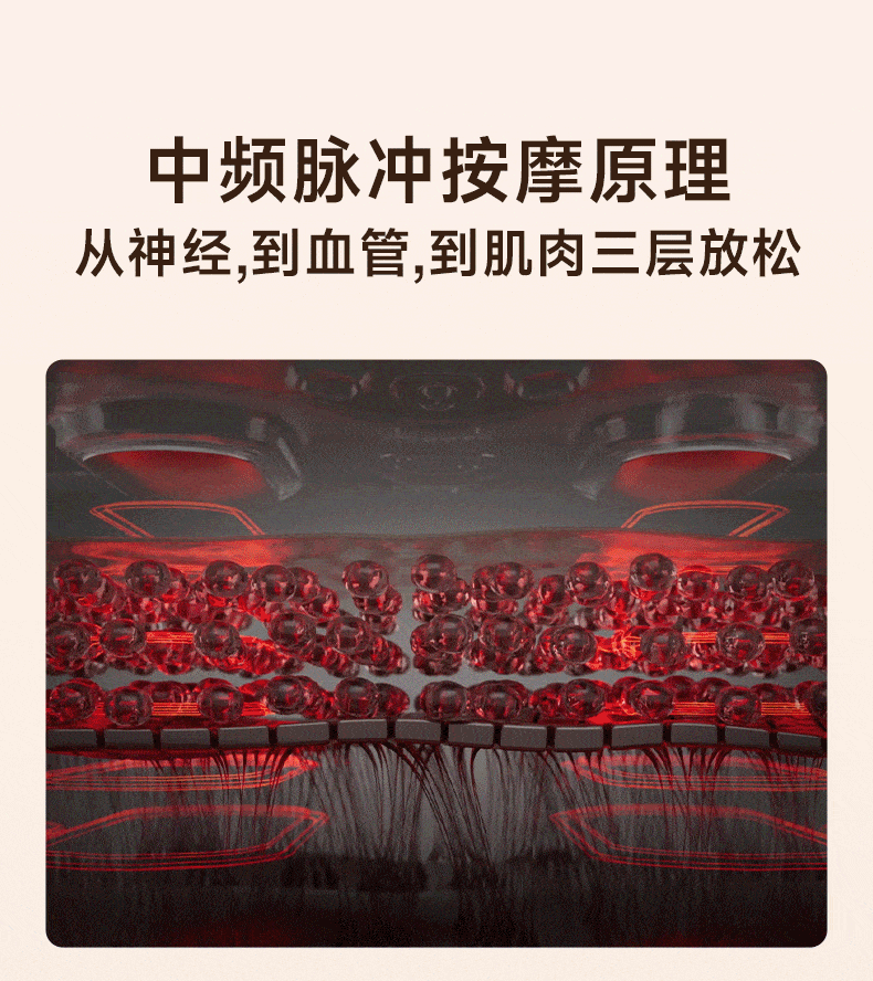 4个电极片大范围对点按摩,采用中频脉冲按摩技术,舒缓更有效