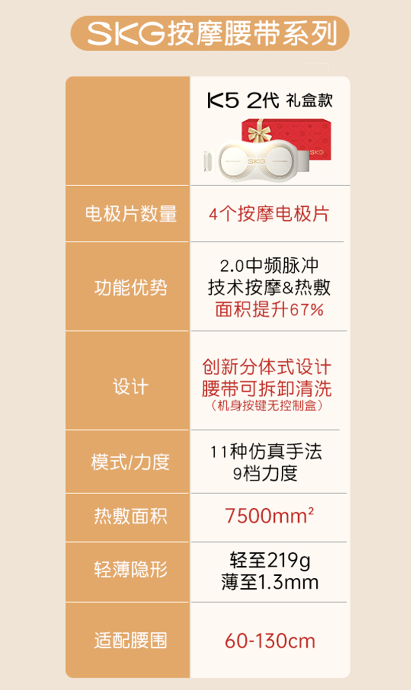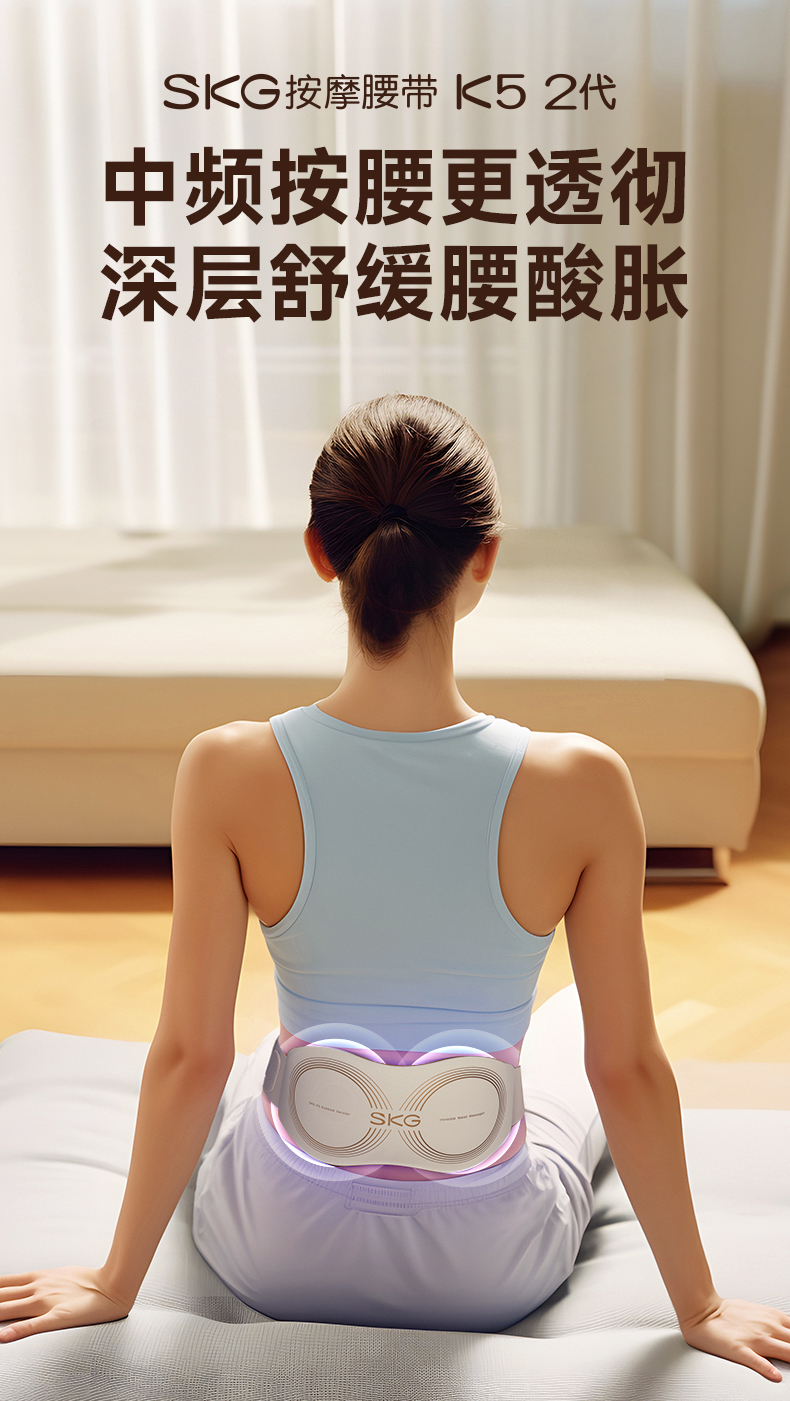 测评优品-SKG腰部按摩仪K5系列2代 中频脉冲按摩 热敷脉冲 智能操控 按摩护腰 可拆洗 易收纳 年货送礼