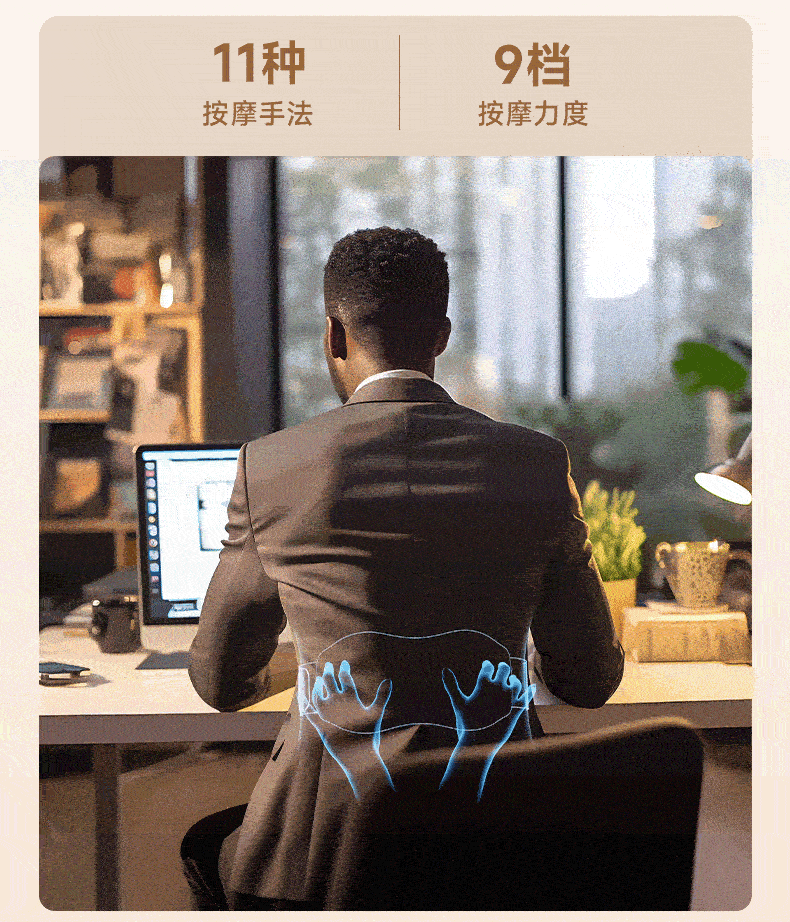戴上腰部以后,可以通过手机app增加按摩手法,调整力度、模式、时长、热敷档位