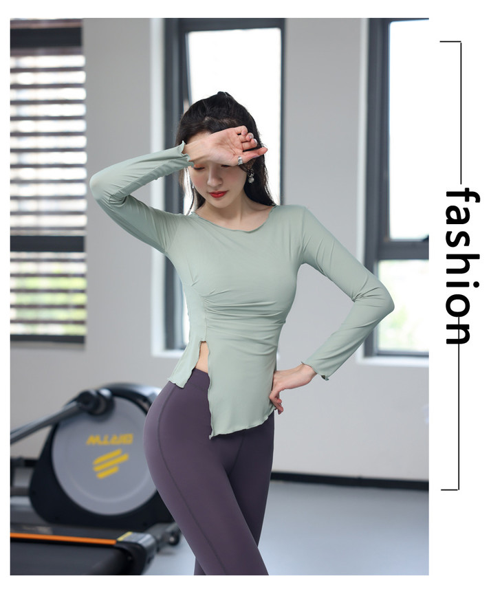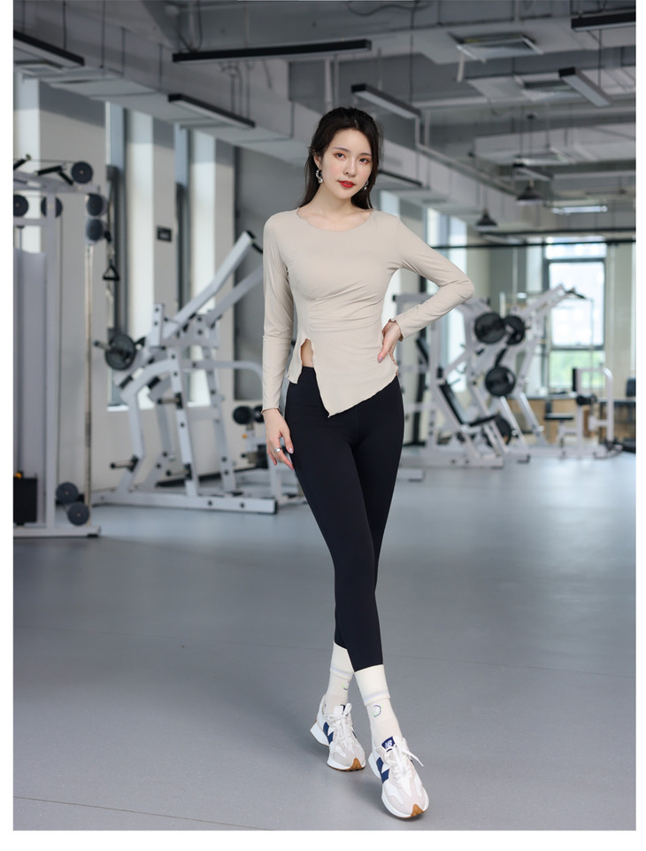 【现货48小时发 】运动瑜伽服速干健身跑步罗纹坑条长袖女子圆领运动修身休闲打底衫