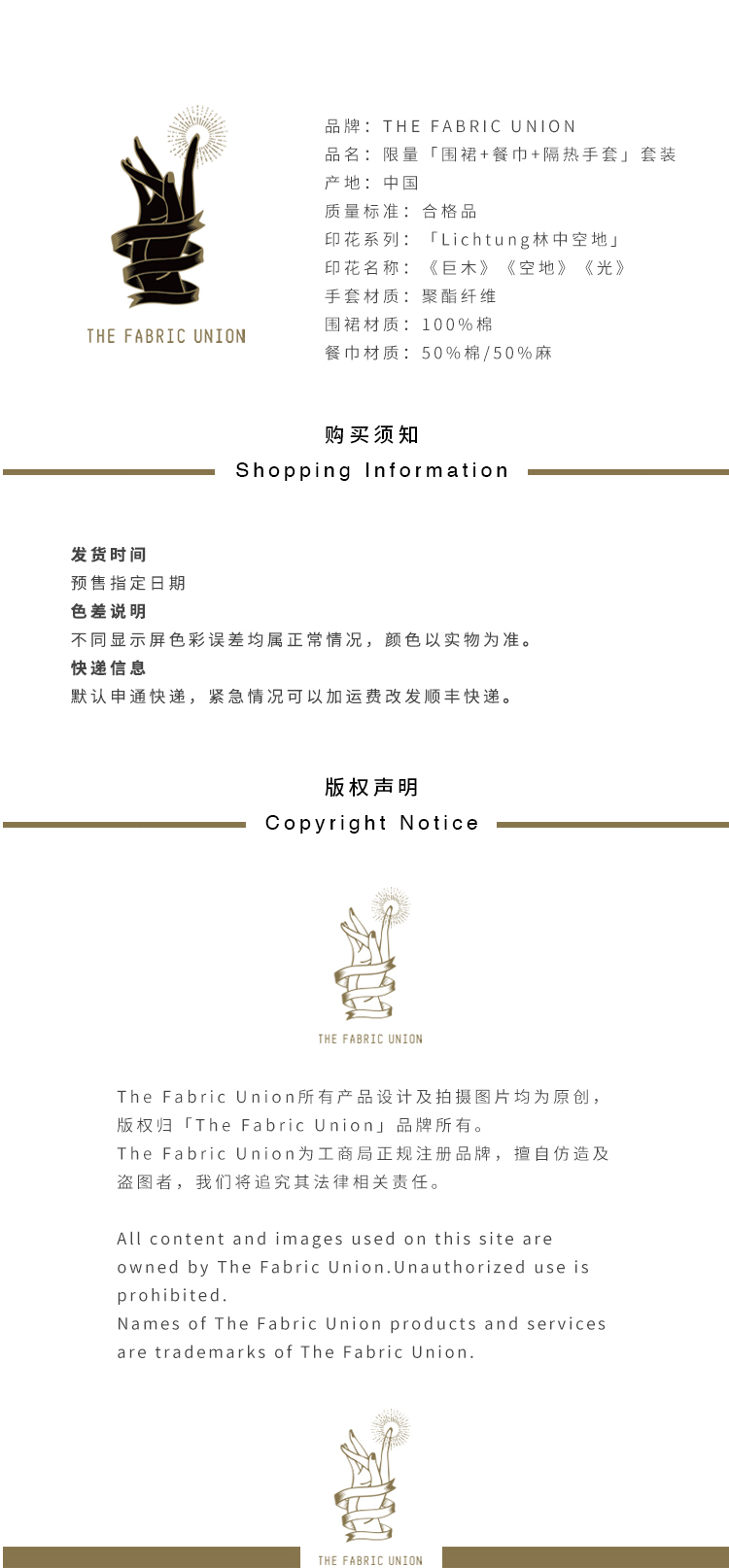 THE FABRIC UNION「Lichtung林中空地」系列 厨用三件套套装