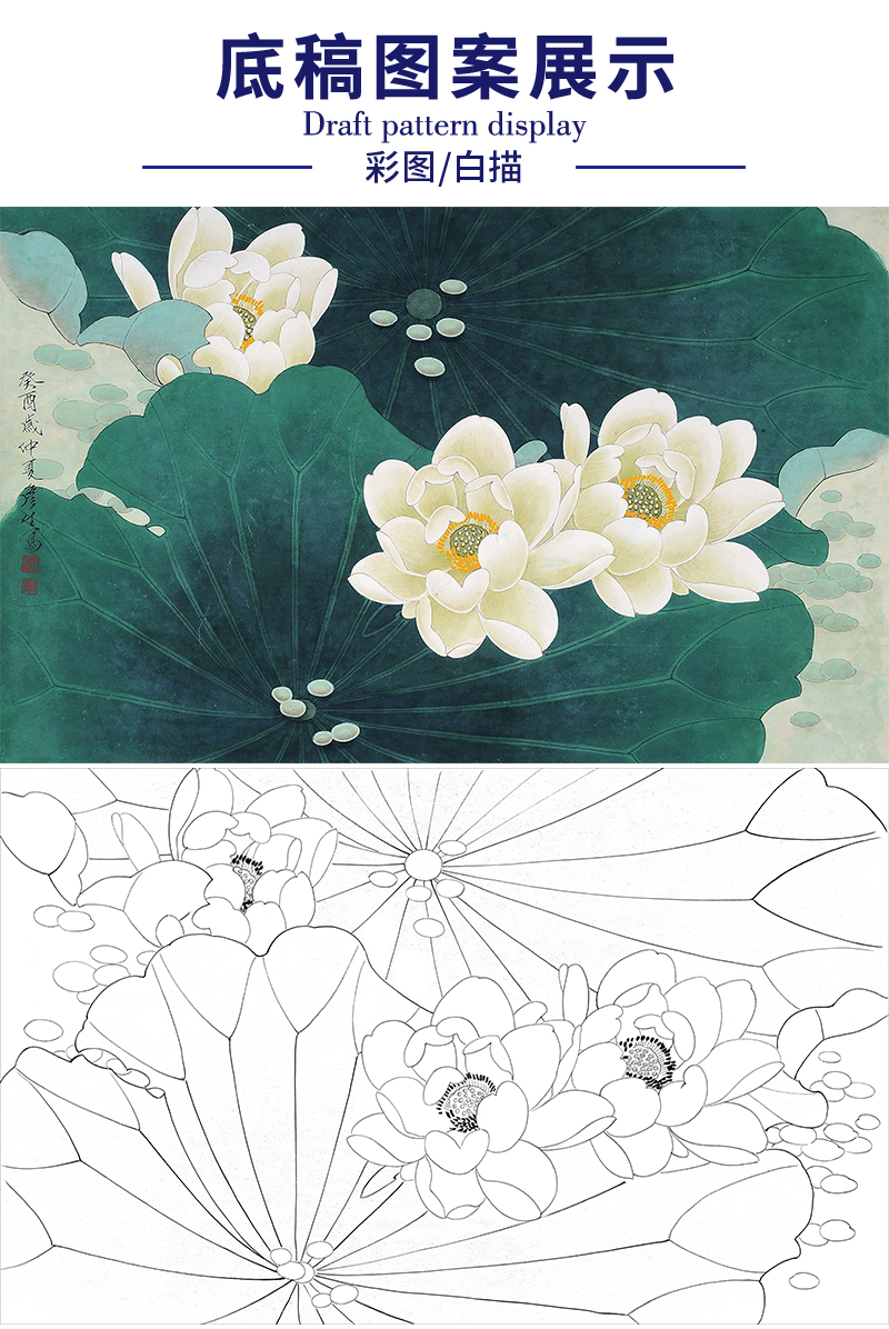 周彦生花鸟工笔画白描底稿《荷香》临摹勾线高清打印稿A666