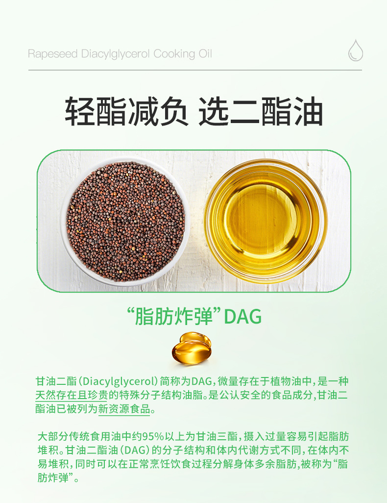 长寿花轻酯甘油二酯食用油40%DAG含量 5L 低芥酸菜籽二酯油家庭装 赠送5斤长粒香大米