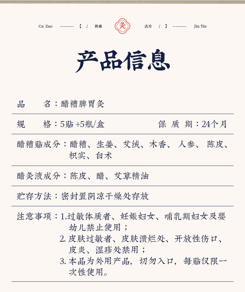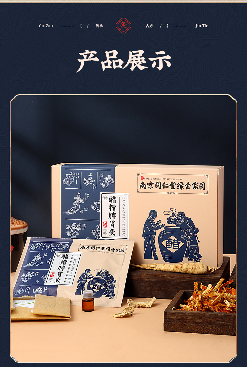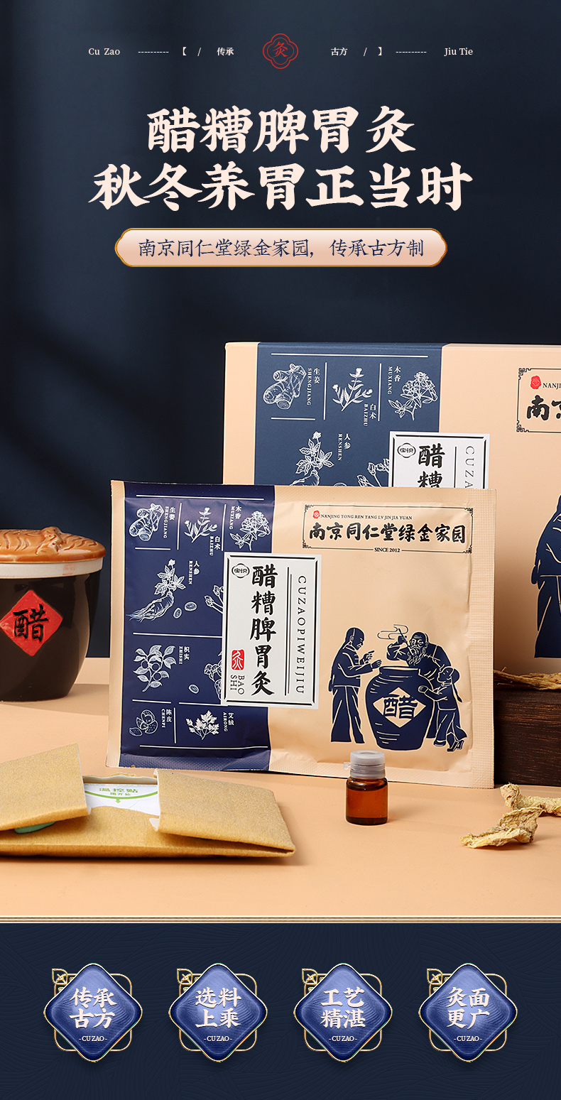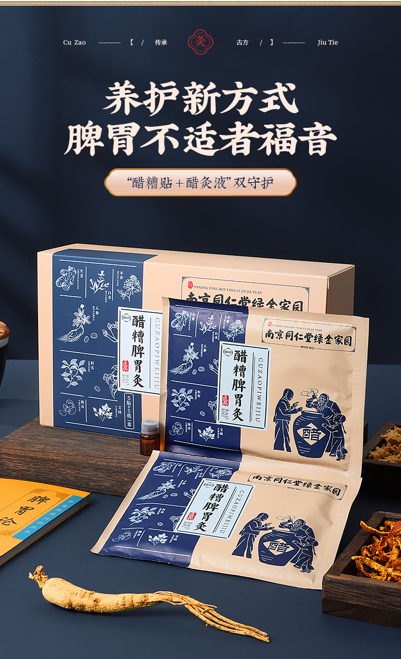 【买4送3】南京同仁堂绿金家园醋糟脾胃灸暖胃散寒一盒5贴+5瓶醋灸液