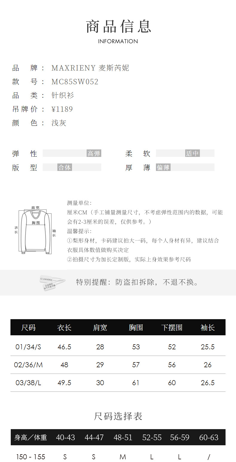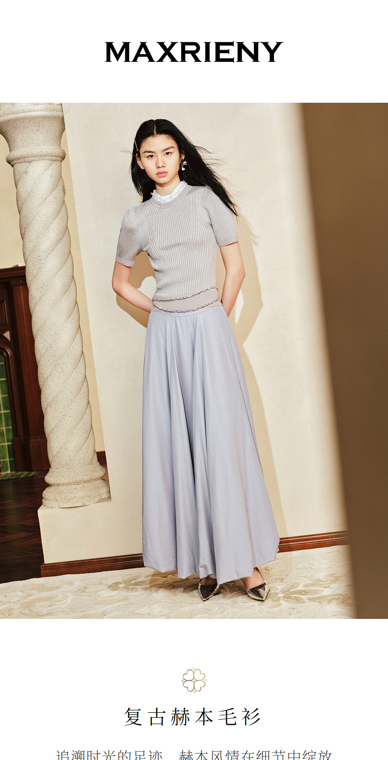 玛克门店发货:】MAXRIENY复古赫本套头修身针织毛衫24春款(货号:MC85SW052)
