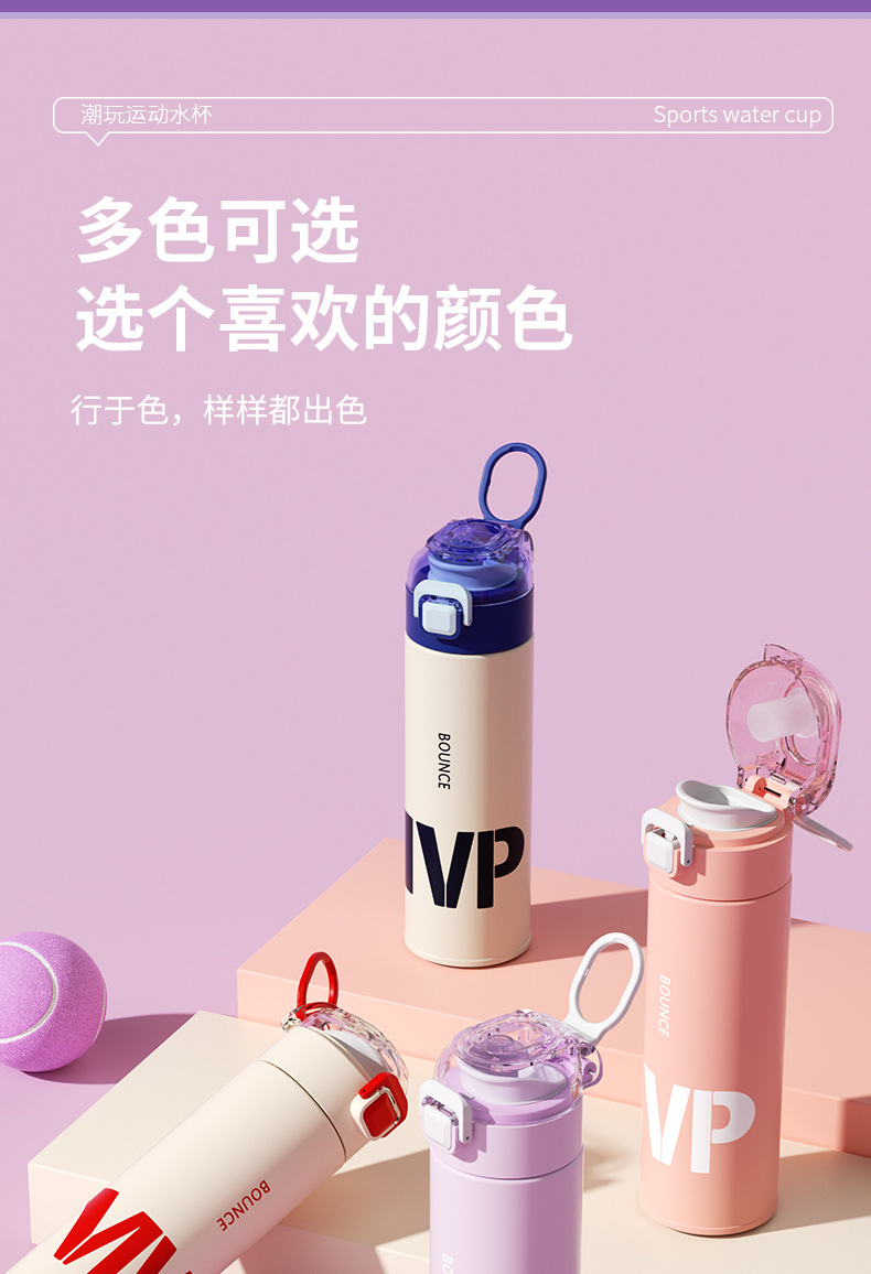 【随心而动,活力出发~】316真空不锈钢弹跳保温杯 大容量运动水杯 便携式户外运动水壶-QQ
