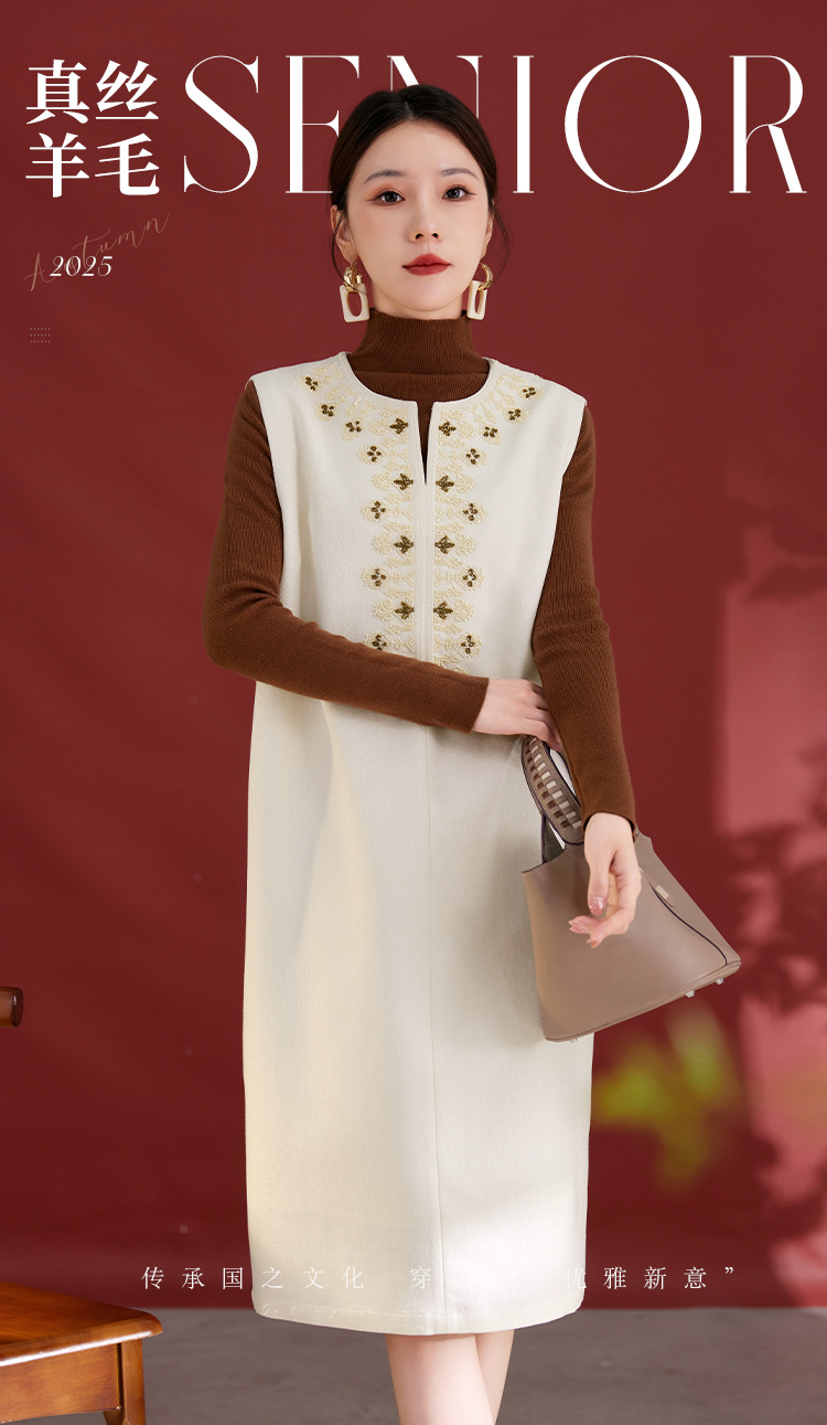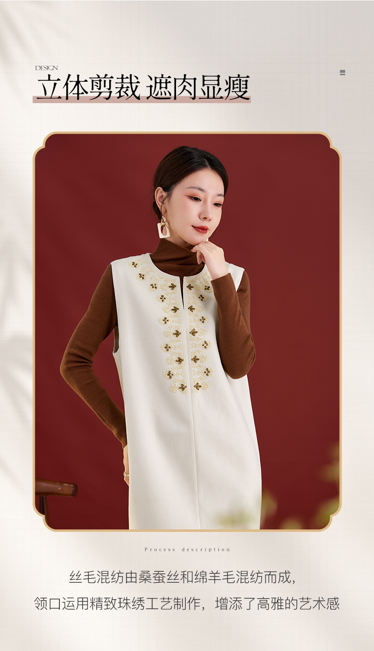 QS羊毛背心连衣裙秋冬新款法式小香风设计感气质裙子女1639