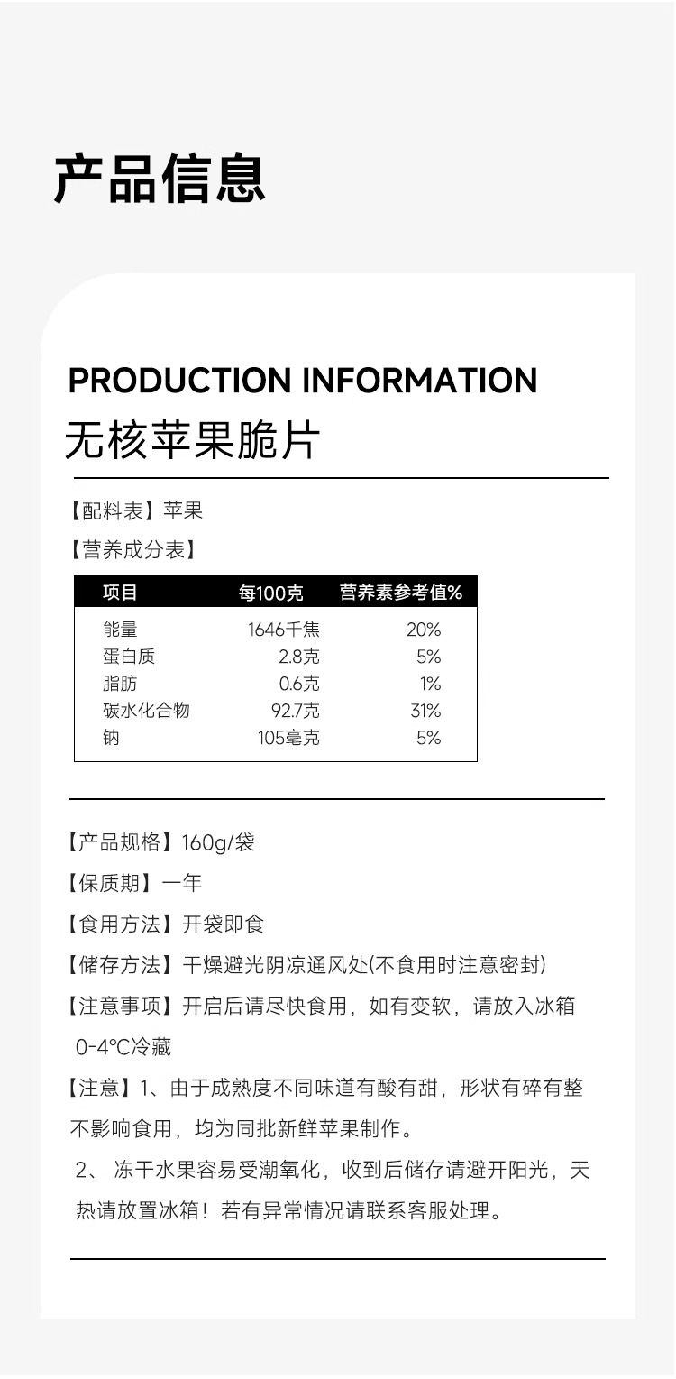 西域小白·苹果脆片160g*2 新疆日照苹果制作 每口都是浓果香