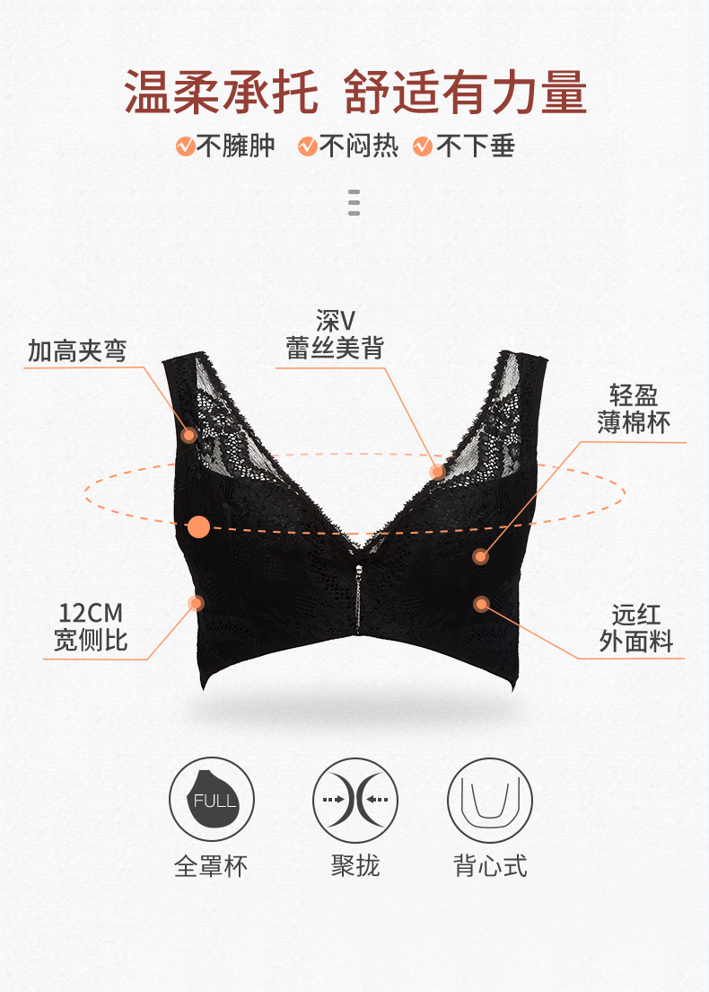 贝佳人全罩薄模杯文胸透气聚拢收副乳大胸包容显内衣简约女BW91916
