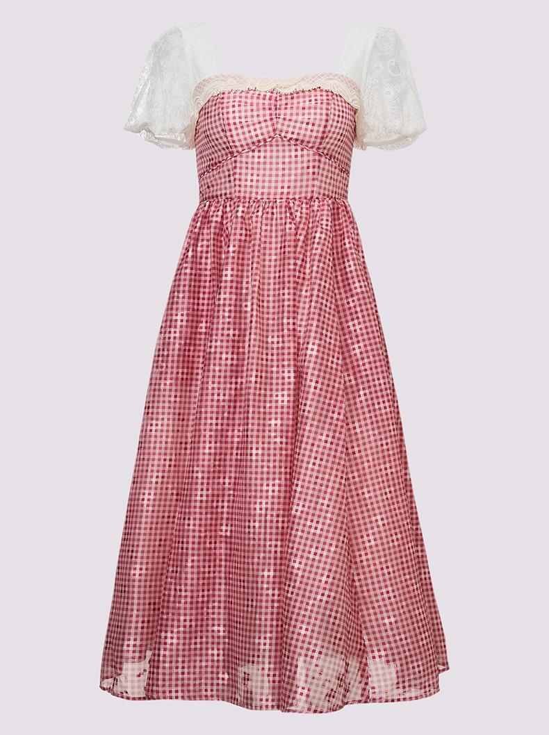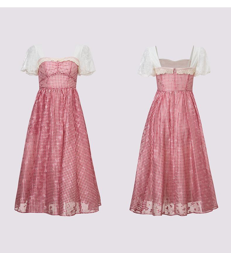 MAXRIENY2025年早春红格纹复古连衣裙公主裙赫本显瘦高腰鬼马甜心(货号:MF86DR004)