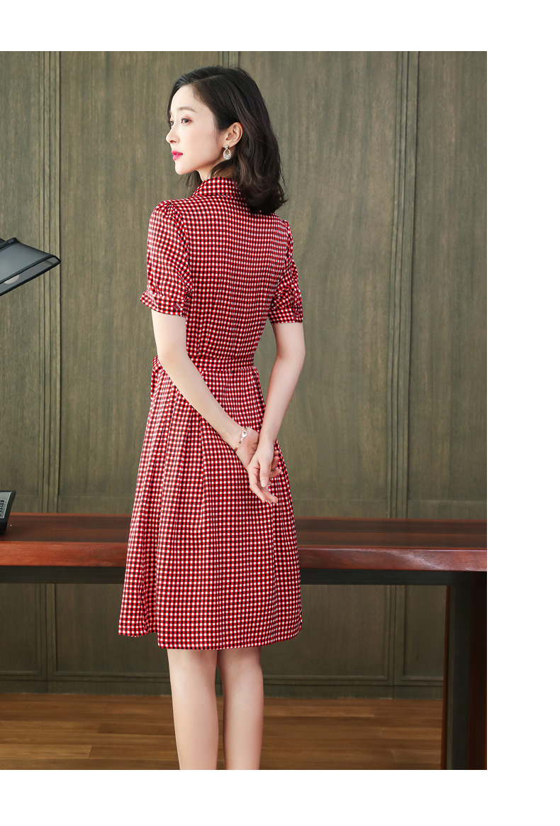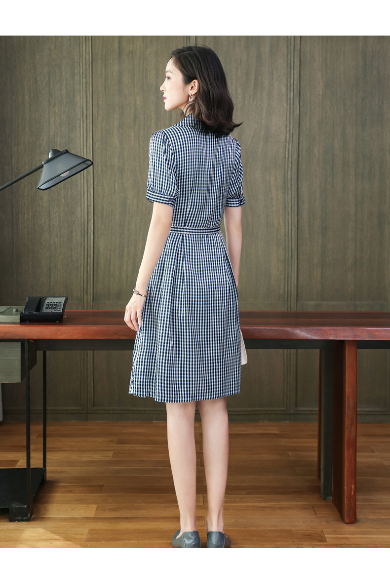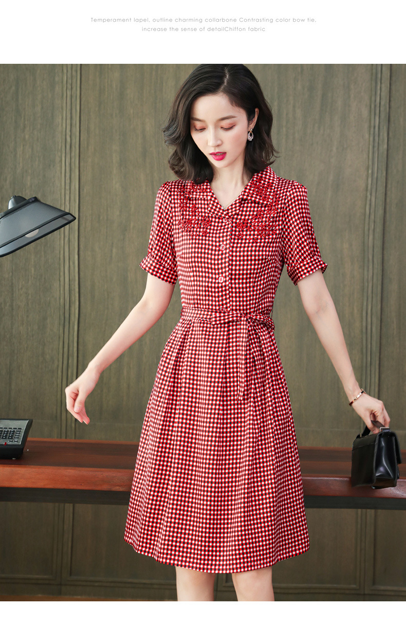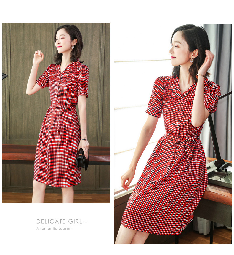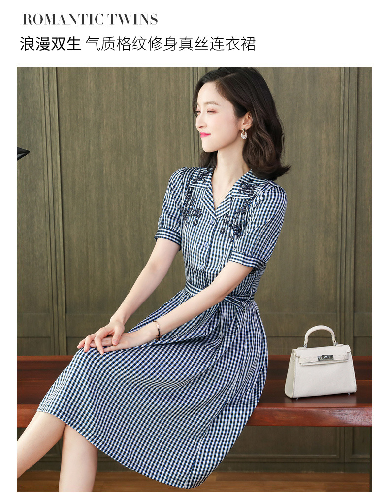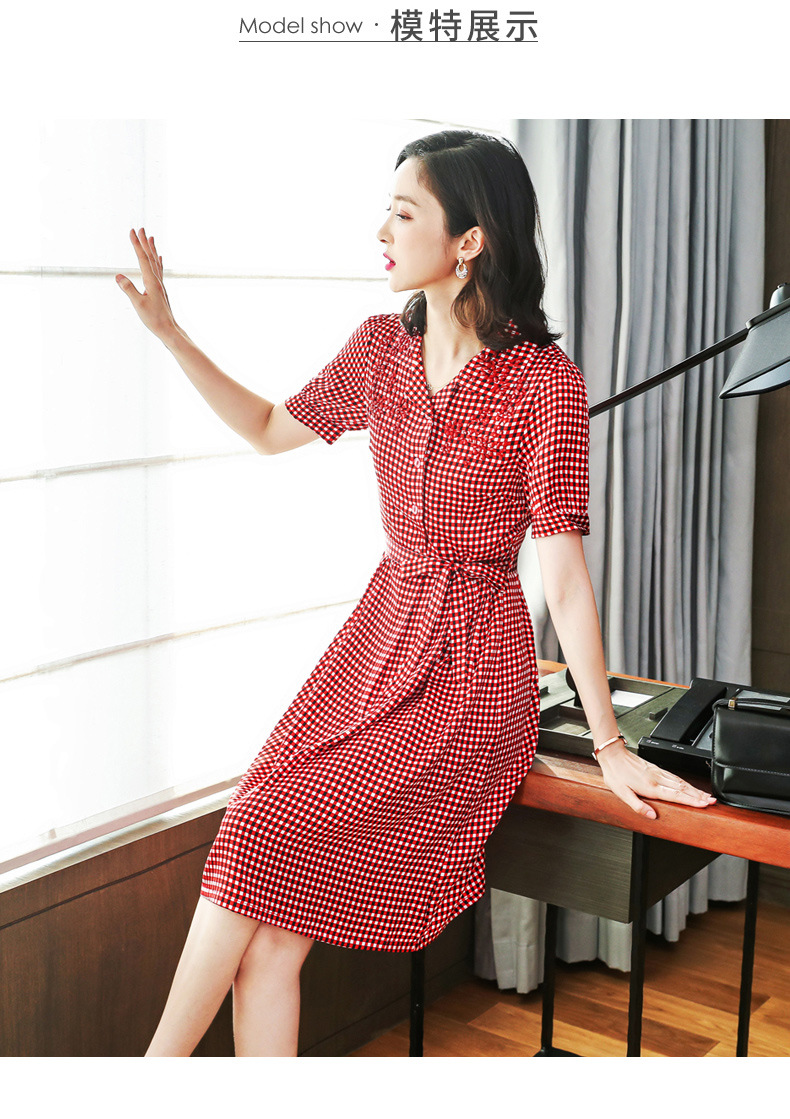 上海旗袍厂ASE-L8891 时尚格子系带真丝连衣裙