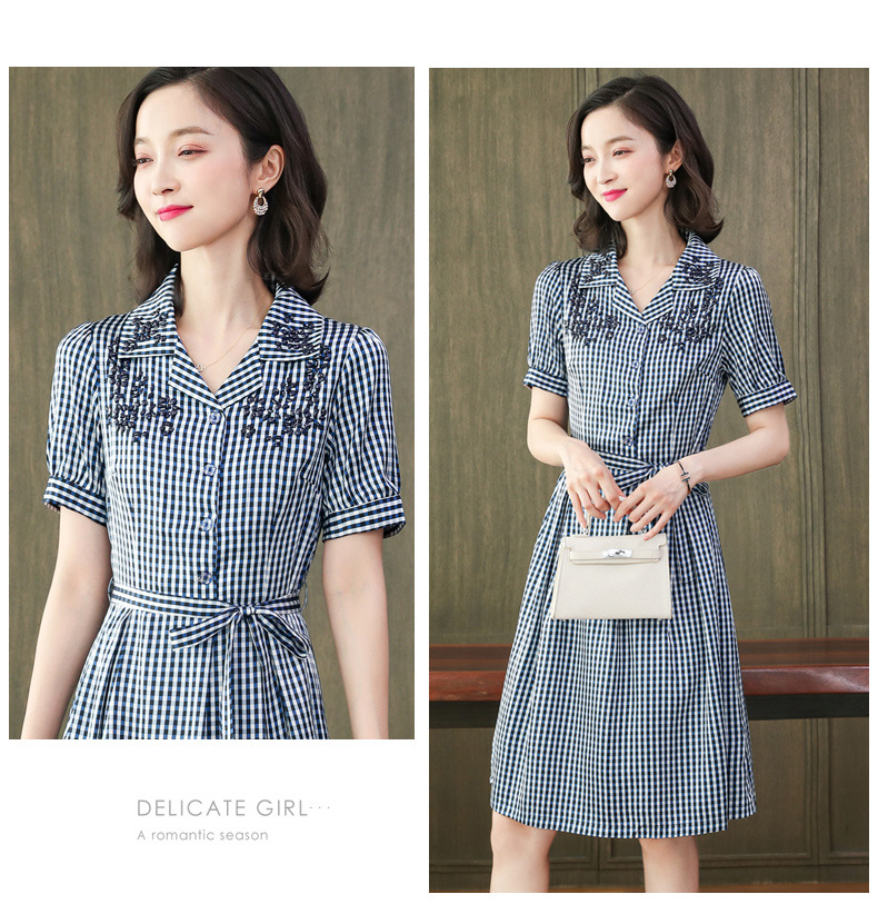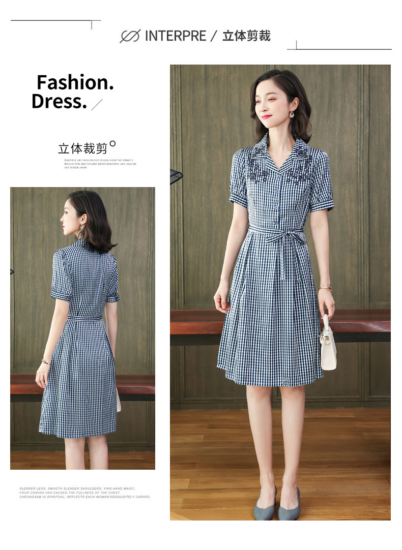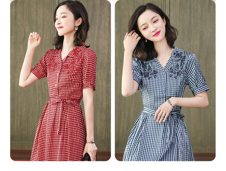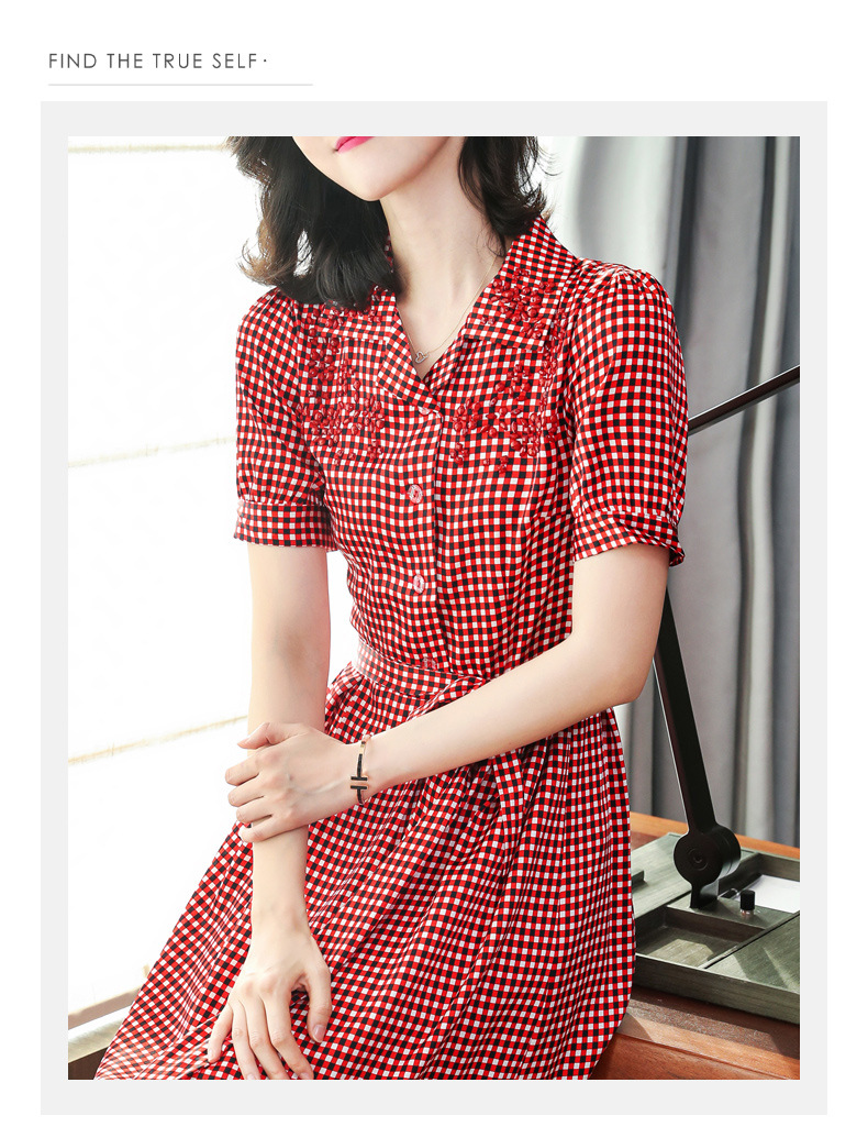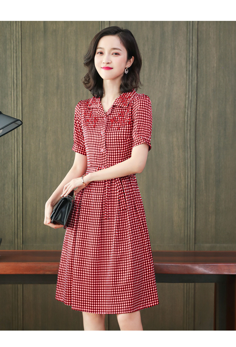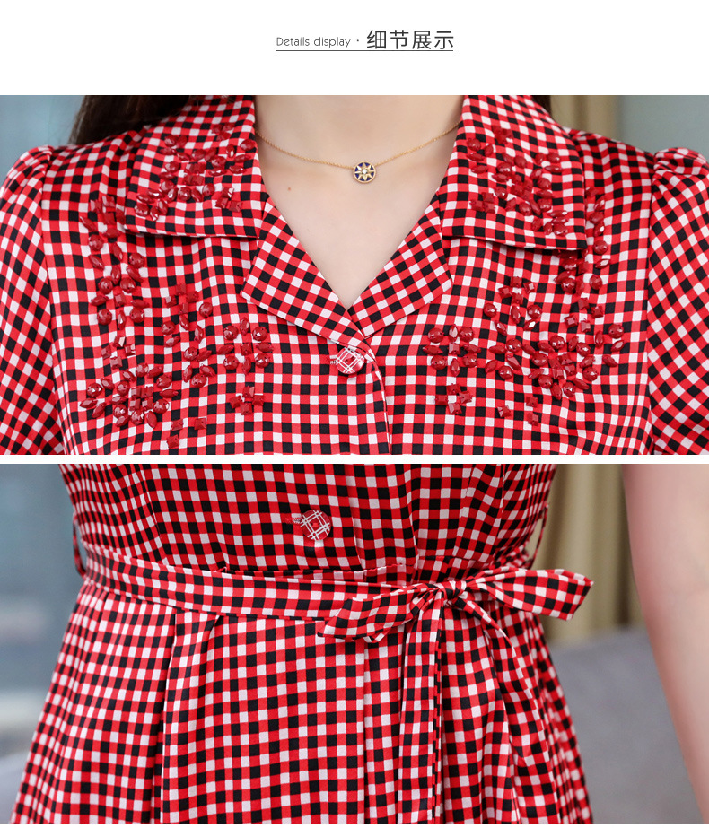 上海旗袍厂ASE-L8891 时尚格子系带真丝连衣裙