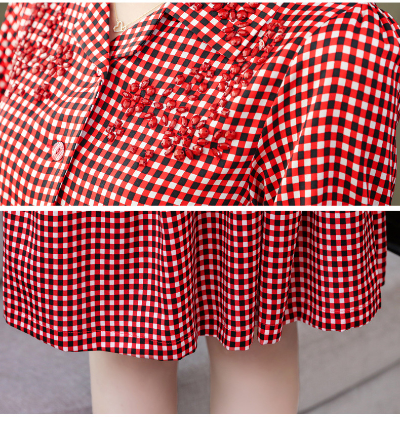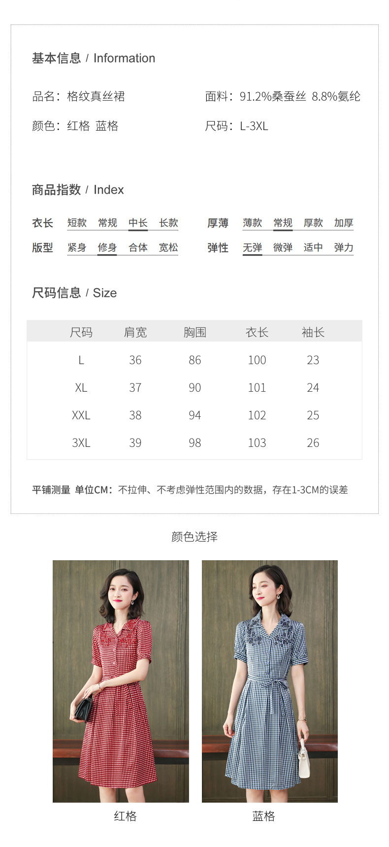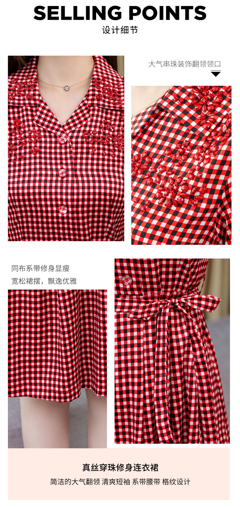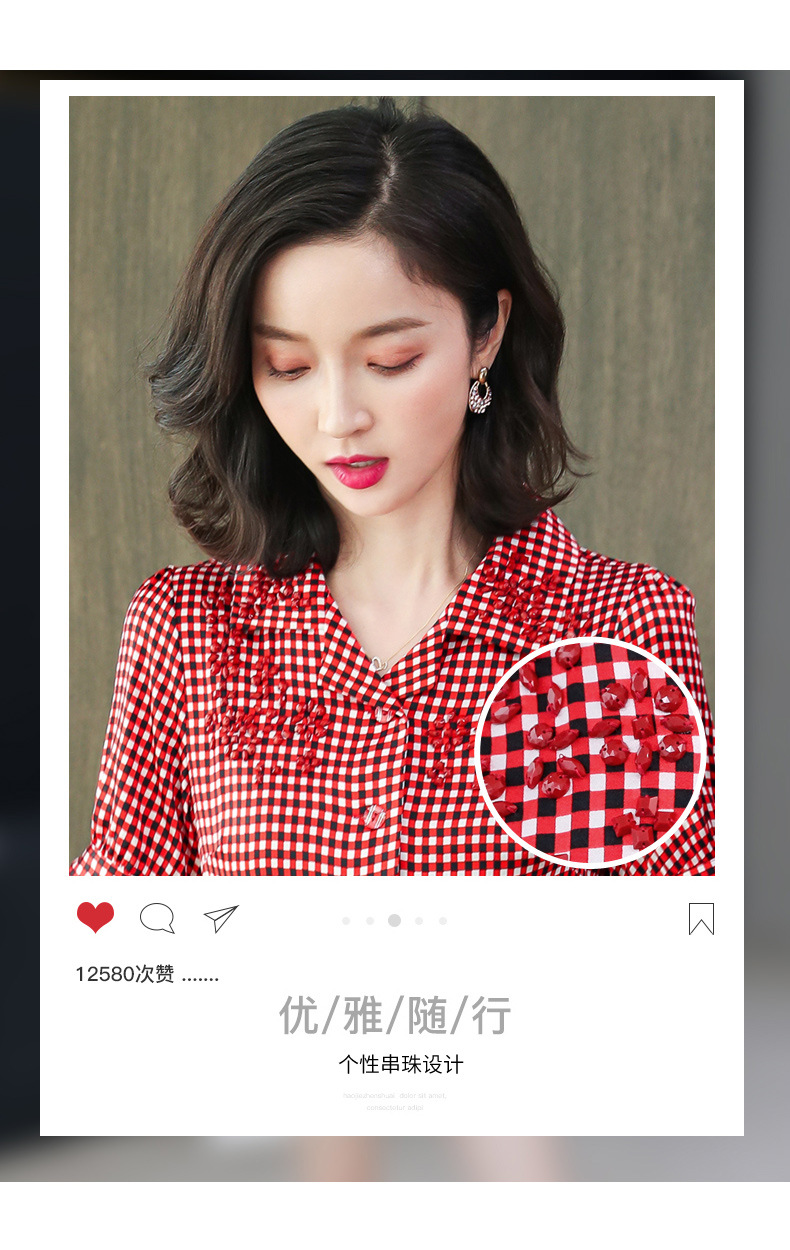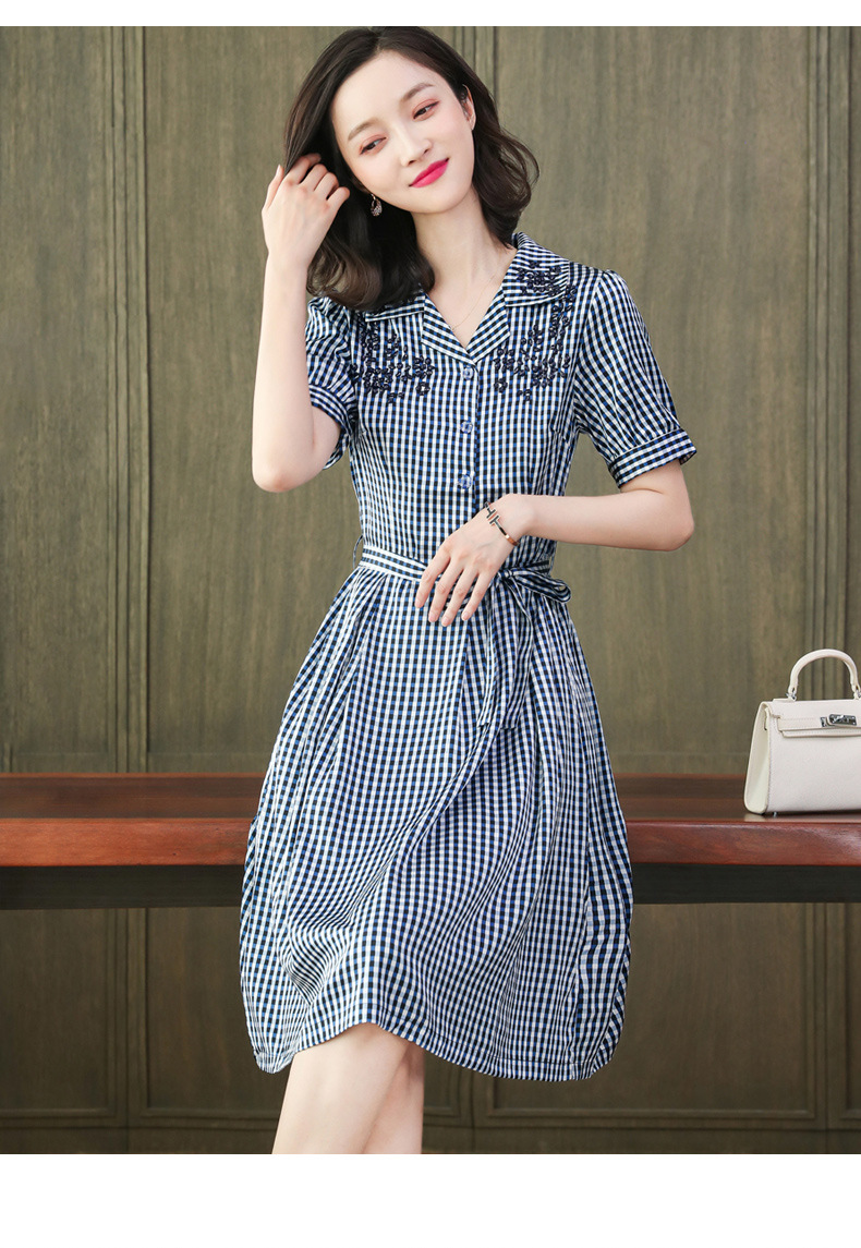 上海旗袍厂ASE-L8891 时尚格子系带真丝连衣裙
