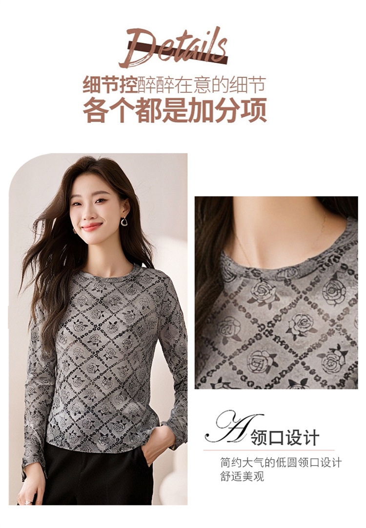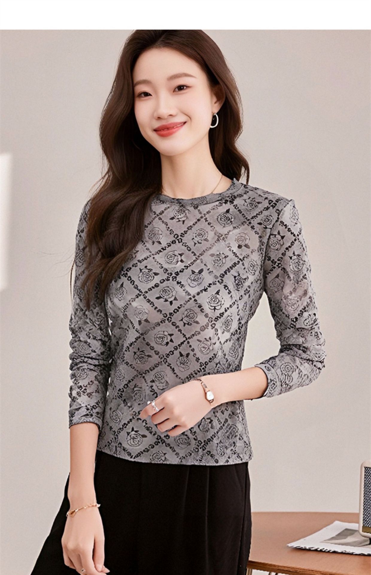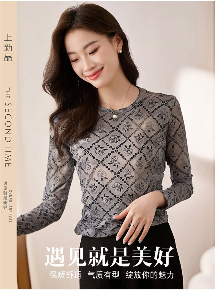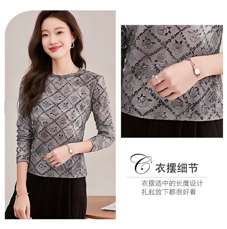 SMZ34269时尚印花网纱长袖T恤女士春季新款高级感百搭显瘦打底衫洋气上衣