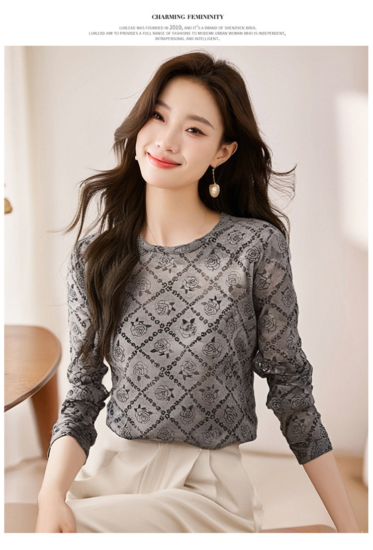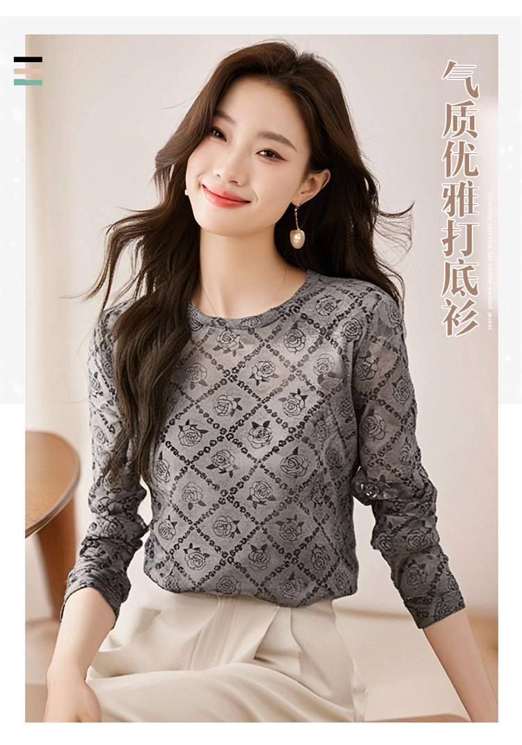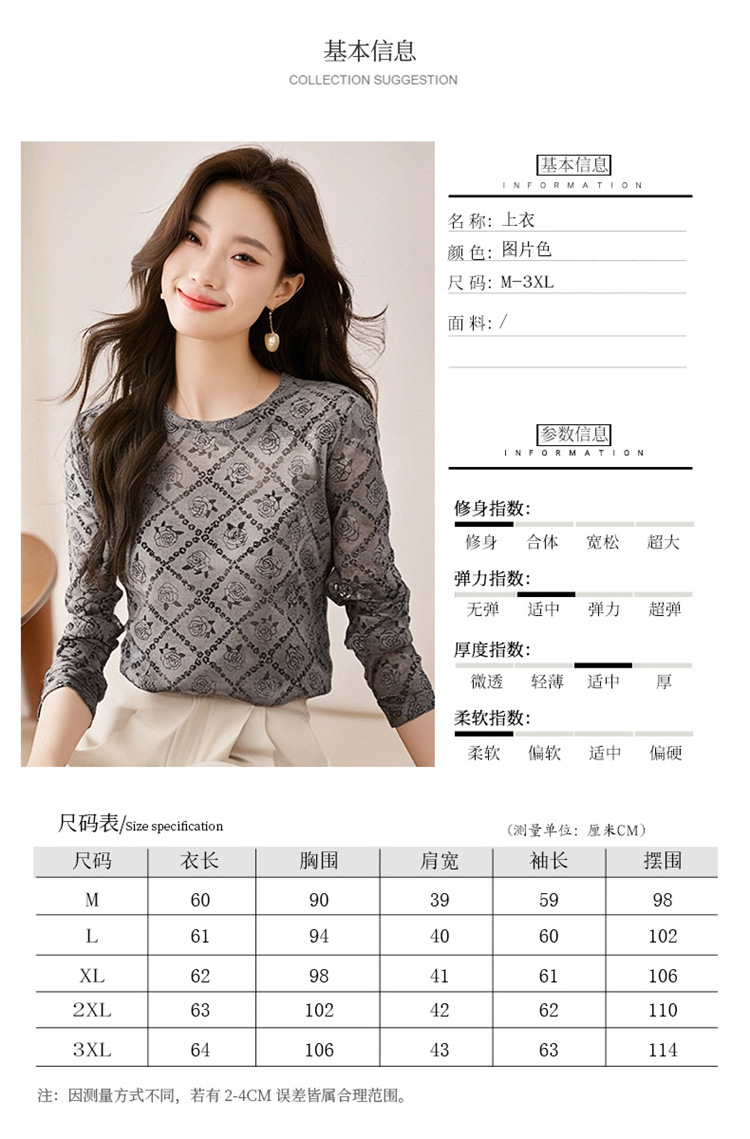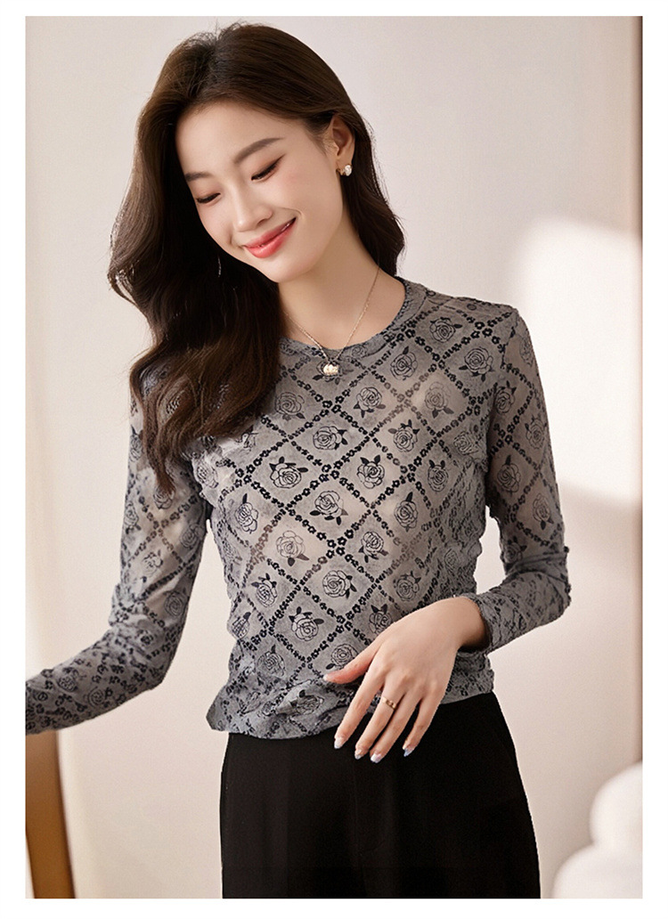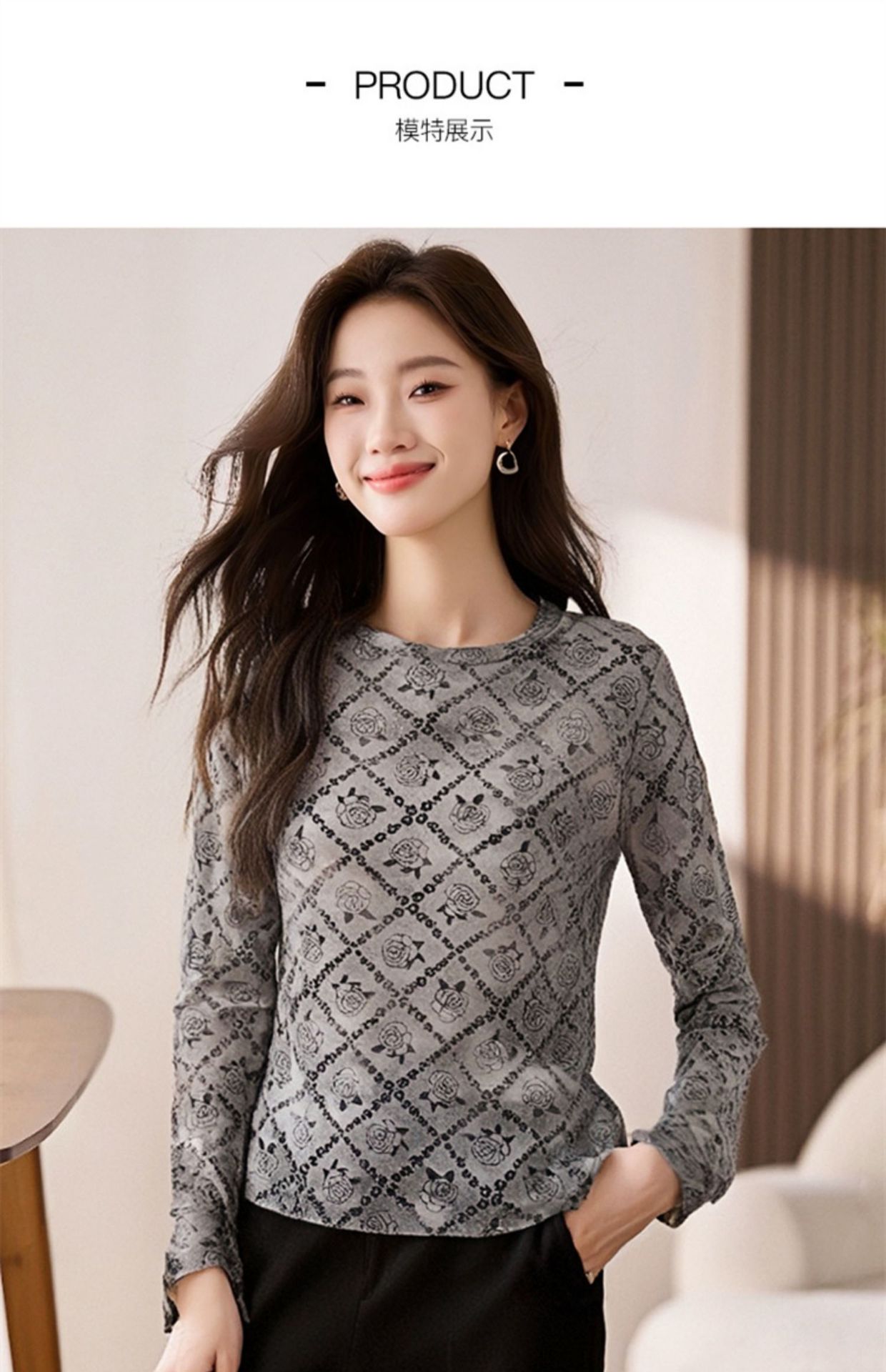 SMZ34269时尚印花网纱长袖T恤女士春季新款高级感百搭显瘦打底衫洋气上衣