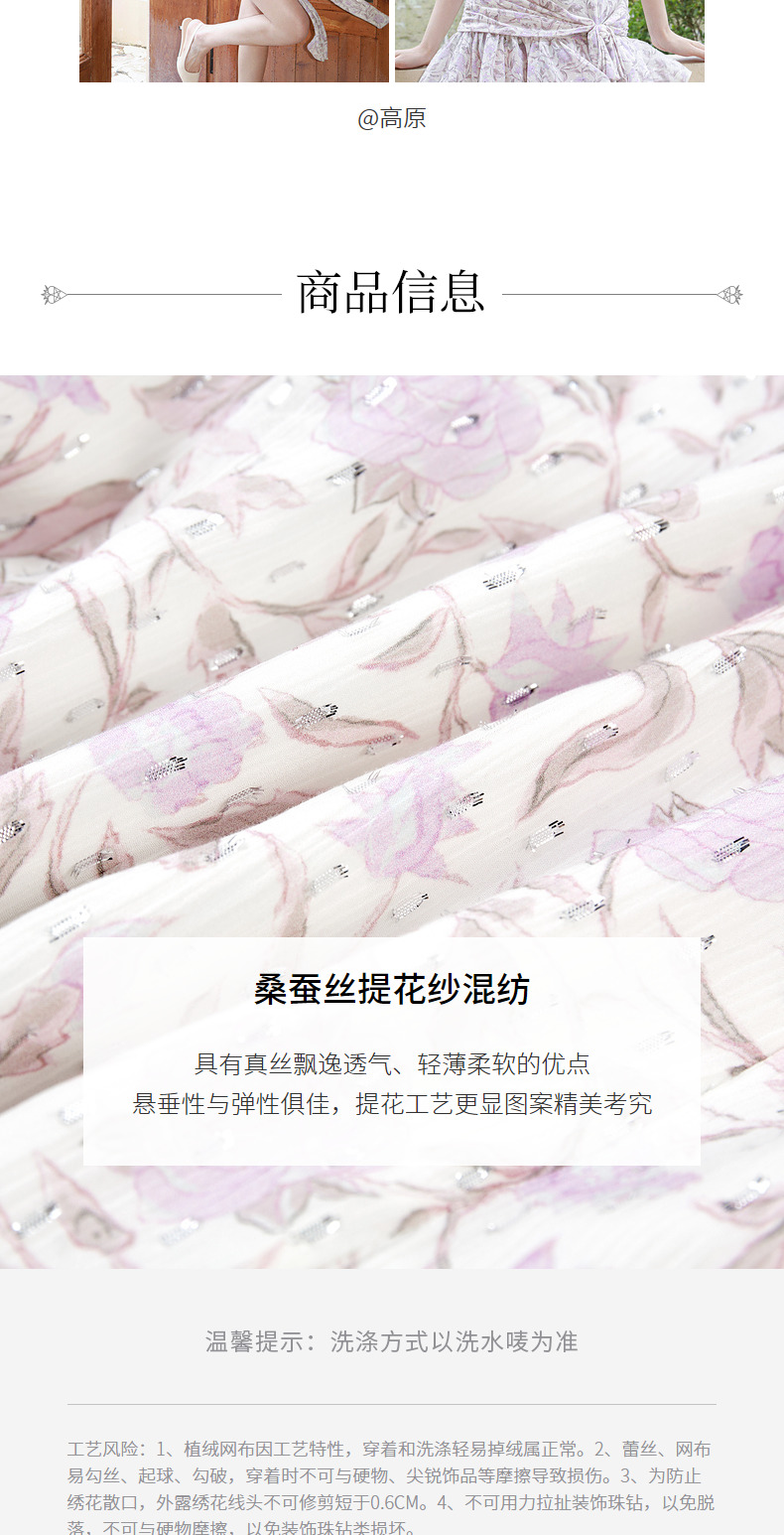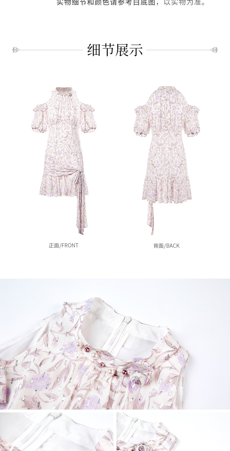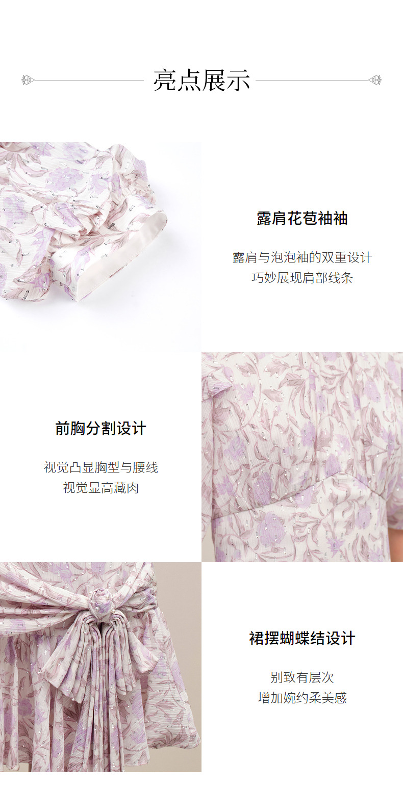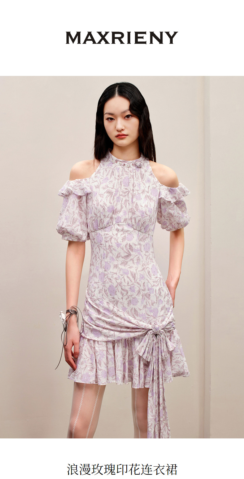 MAXRIENY法式浪漫感玫瑰印花连衣裙系带仙美裙子(货号:MC88DR507)
