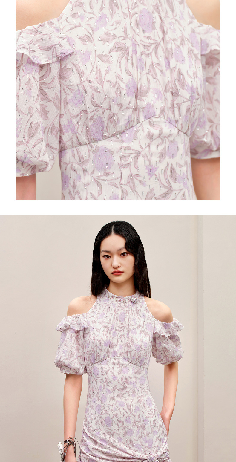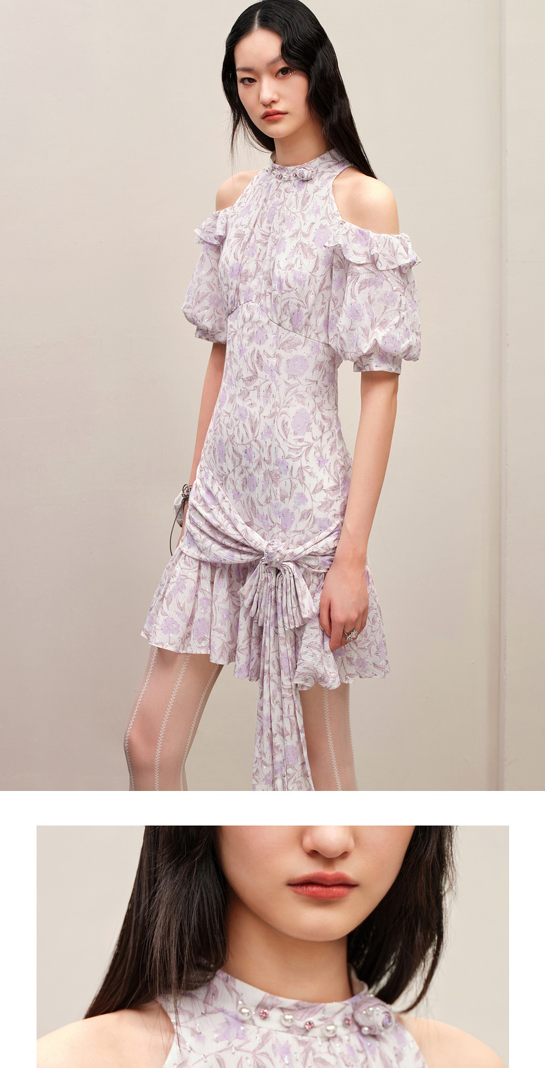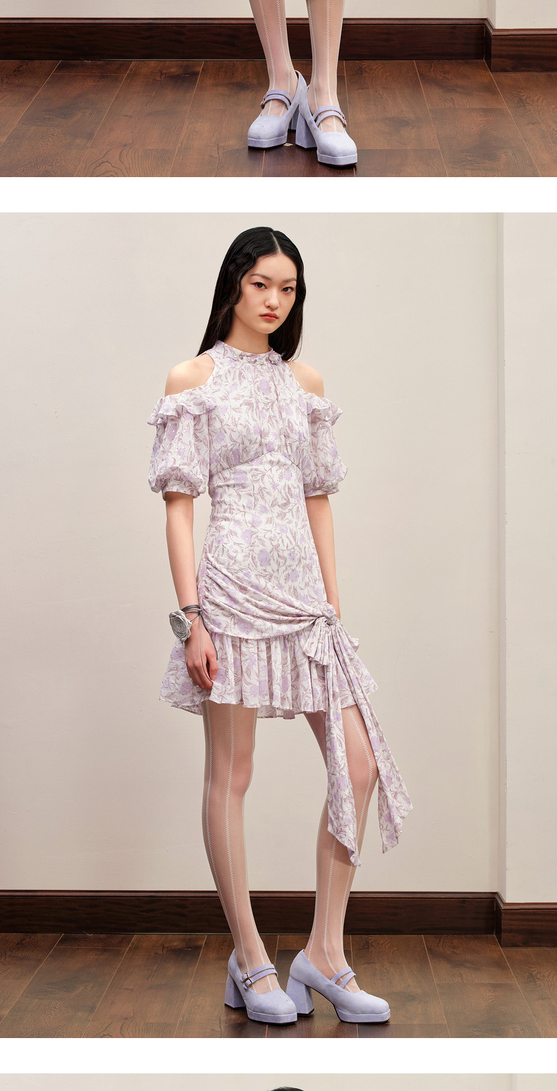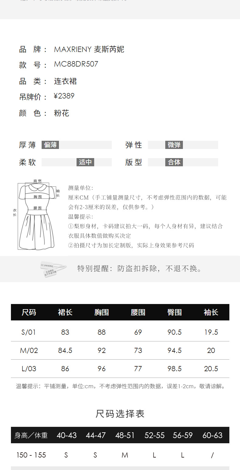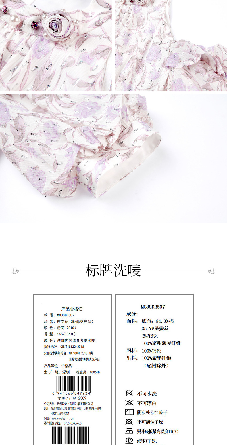 MAXRIENY法式浪漫感玫瑰印花连衣裙系带仙美裙子(货号:MC88DR507)