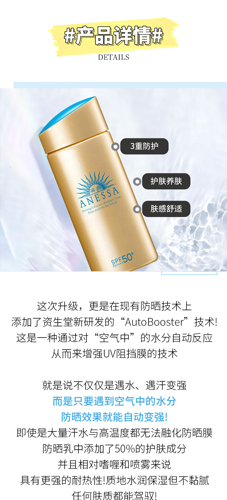 防晒界的爸爸 新款盒装安耐晒小金瓶防晒霜60/90ml SPF50+防水防汗