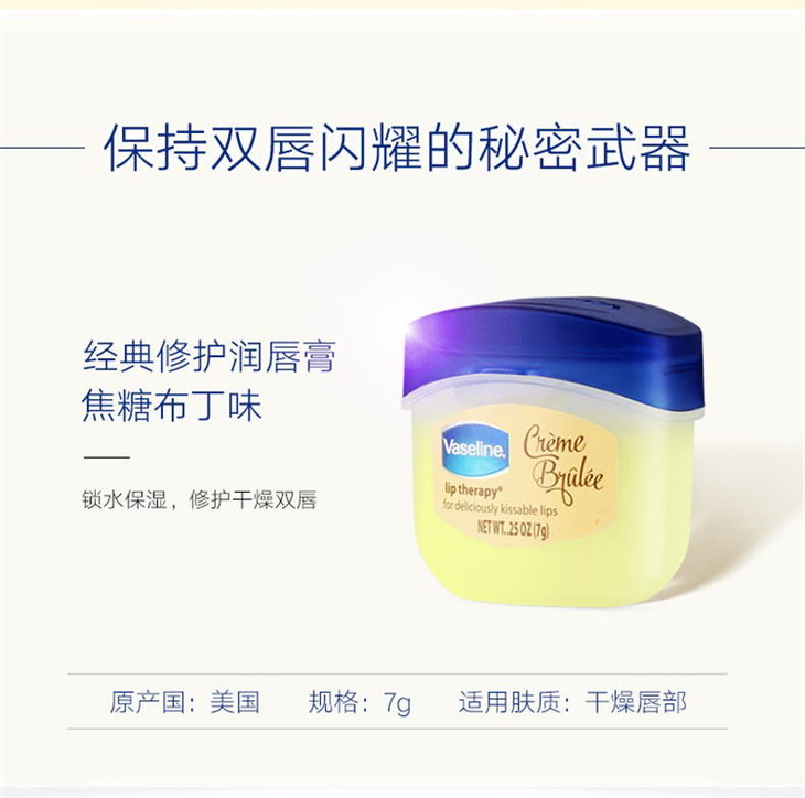 Vaseline凡士林润唇膏-7g(焦糖布丁味/原味/巧克力味/玫瑰味/无色)