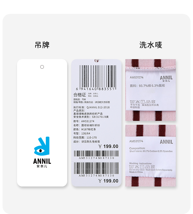 【实体店同款】男女童圆领长袖针织衫秋季新款安奈儿童装AM531274