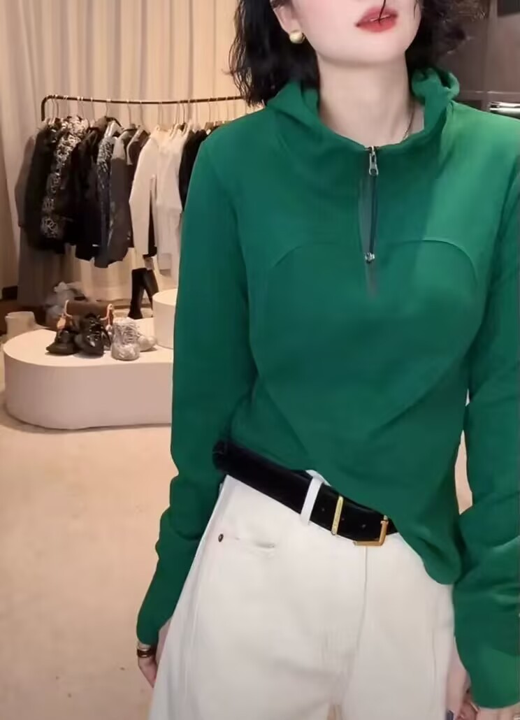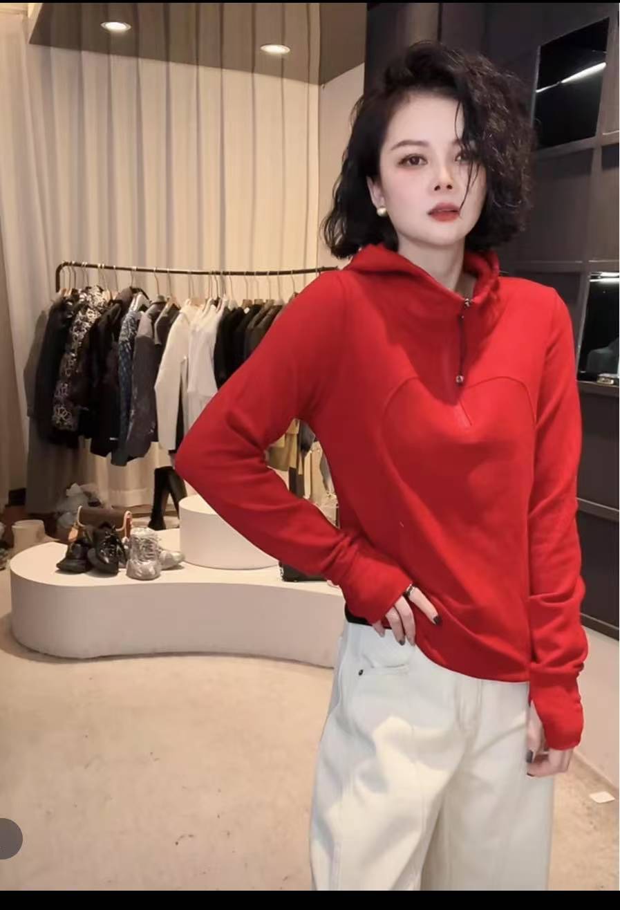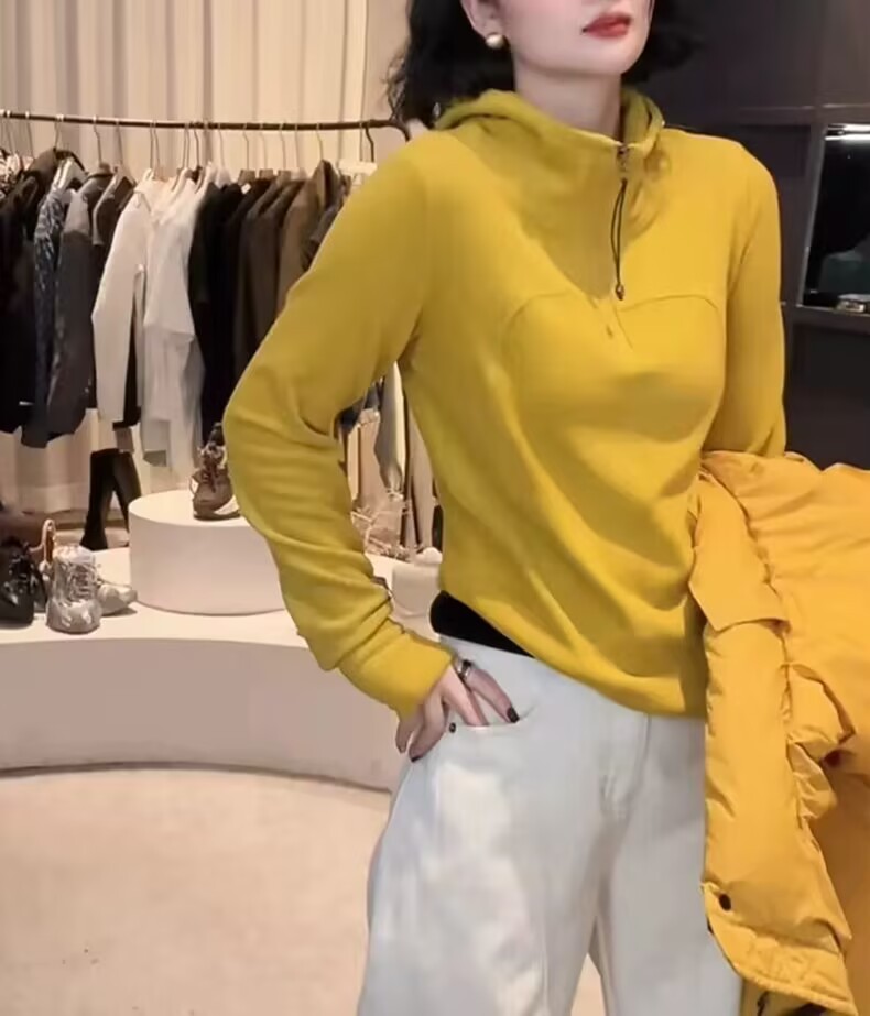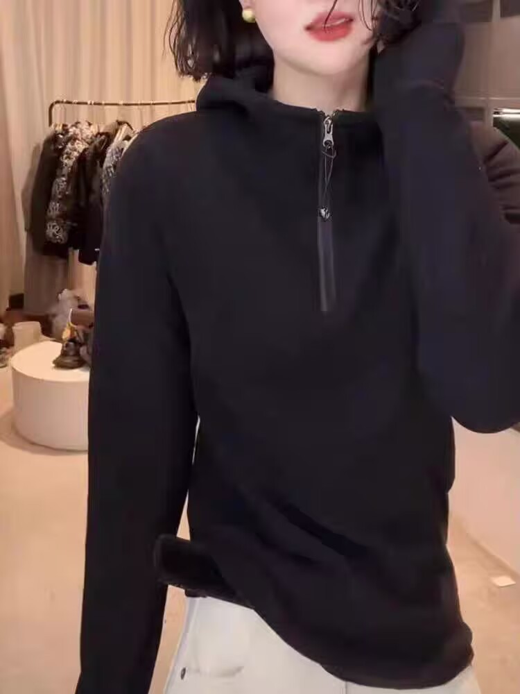 丁摩 锦梳棉半拉链连帽卫衣女春秋内搭打底帽衫上衣潮5ZF-8639