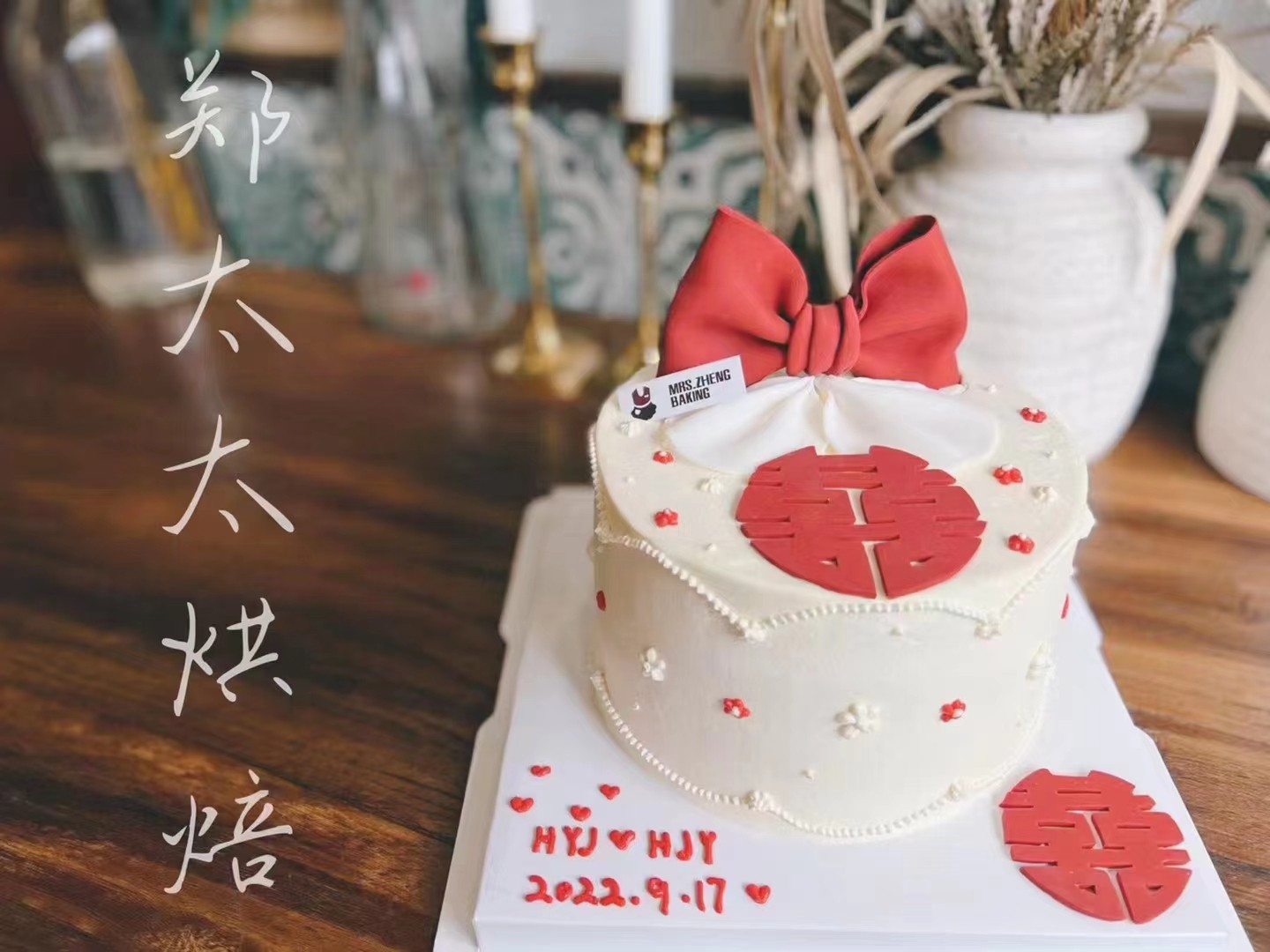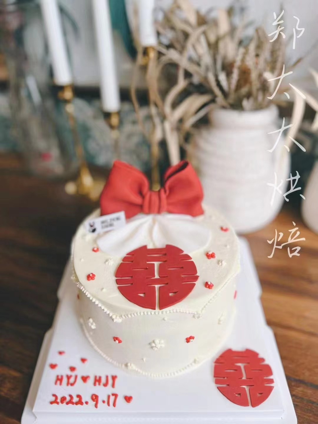 蝴蝶结 喜字为翻糖制作