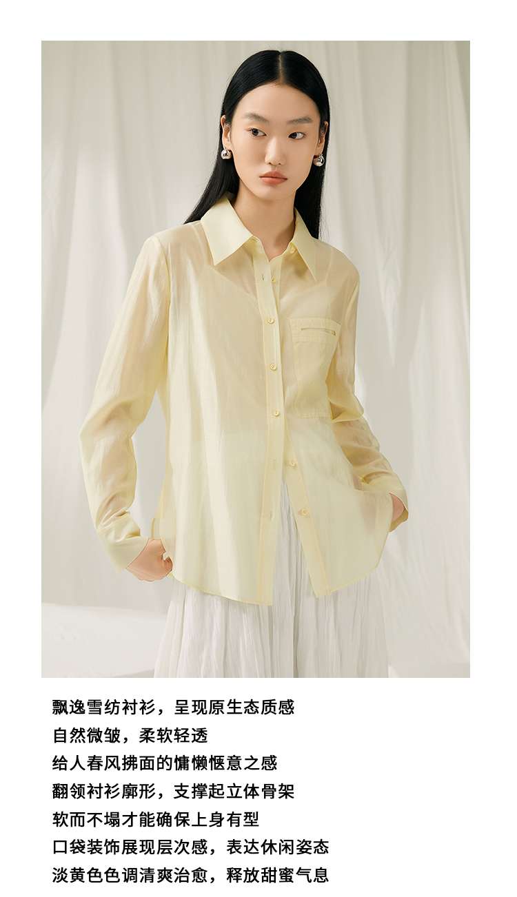 VIMAGE纬漫纪夏季新款宽松舒适薄衬衫女衬衣V1909506